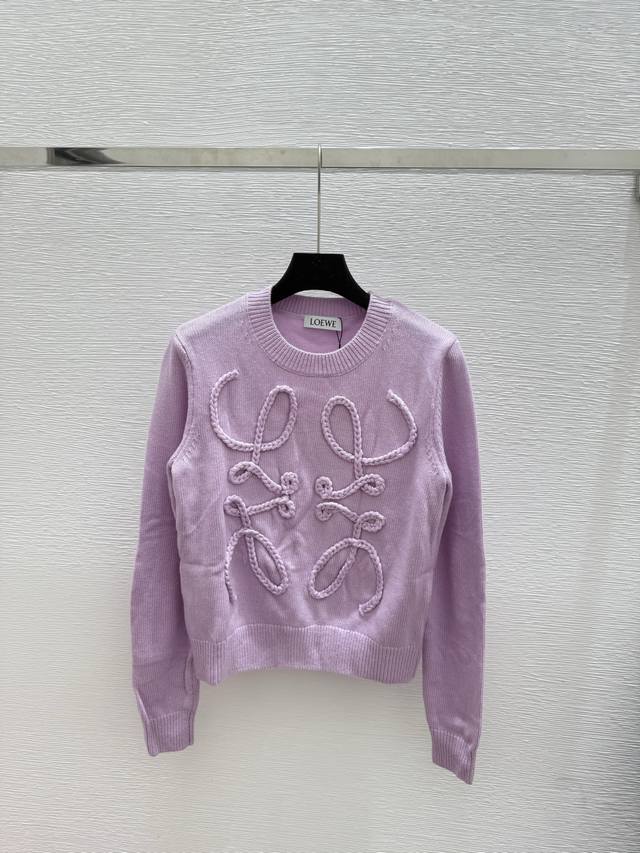/ Lo's early autumn new solid color three-dimensional pattern round neck knitted l