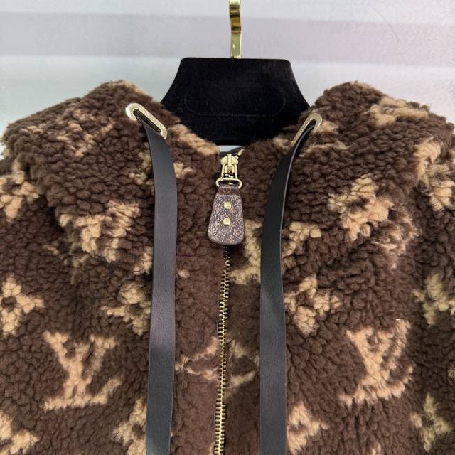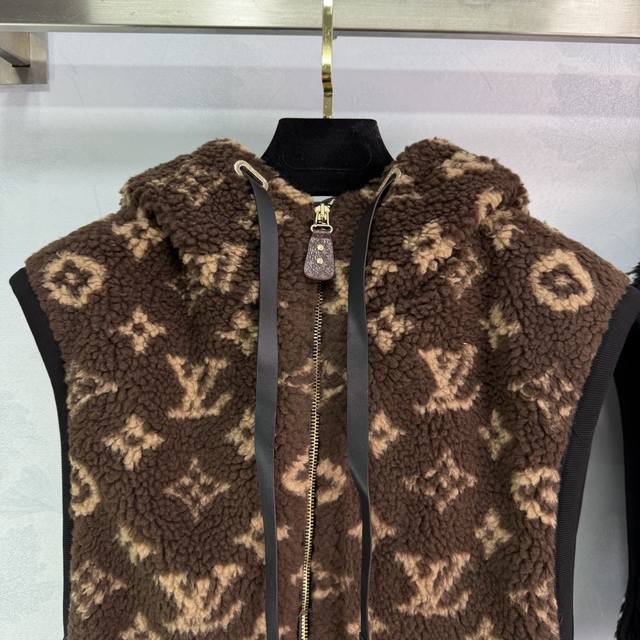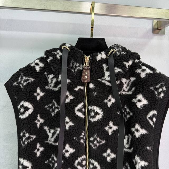 Lou* 2025 Fall/Winter new hooded Teddy plush waistcoat, custom-made from YB polar fleece with a noticeable grainy feel. Soft and skin-friendly, this stylish hooded zipper vest features a large, Teddy cashmere print with four-leaf clover motifs and a monogram logo, highlighting the brand's understated luxury. Adjustable zipper slits and signature leather buckles fasten at the waist. Stylish and effortless, perfect for everyday wear or casual occasions! Available in 2 colors and 3 sizes (Sml T226B