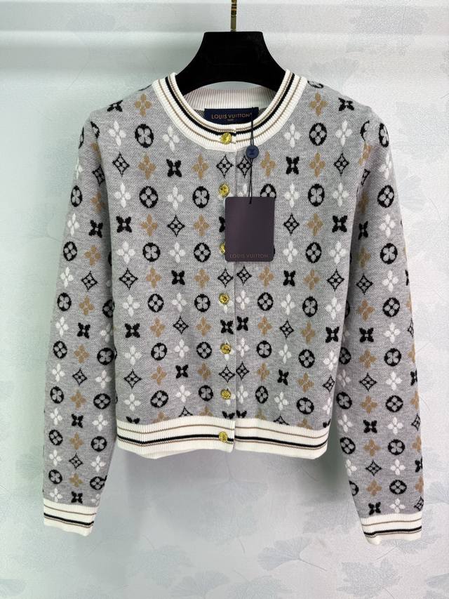 Lou* Early Autumn New Monogram Print Short Knit Cardigan with Unique Design Elements, Metal Buttons, and a Stylish Monogram Logo. A classic cut that flatters all body types and is incredibly slimming! Available in 2 colors and 3 sizes (S, M, L). DDD