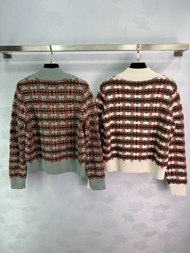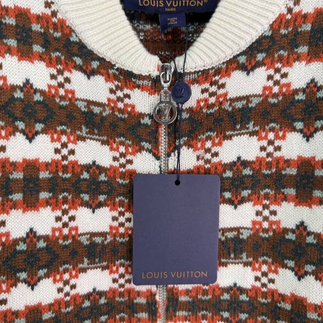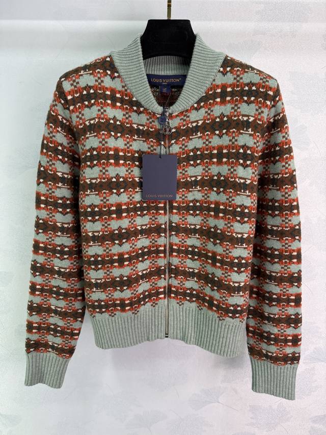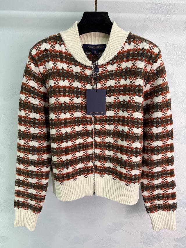 Lou*2025 Autumn/Winter New Crew Neck Knitted Zipper Cardigan, Custom Yb Wool Yarn, Soft and Skin-Friendly with a Lustrous Texture. Regular Crew Neck Zipper Cardigan with Textured Plain Knit for a Slimming and Stylish Look. The neckline and cuffs echo each other, while the hem features solid-color ribbed trim for a flattering fit. The body is decorated with crochet details in a striped pattern, and the chain buckle and logo engraving showcase the brand's fashionable style. Versatile for autumn, easy to match, and perfect for layering in autumn and winter! 2 Colors, 3 Sizes: S, M, L, T2, 26, B,