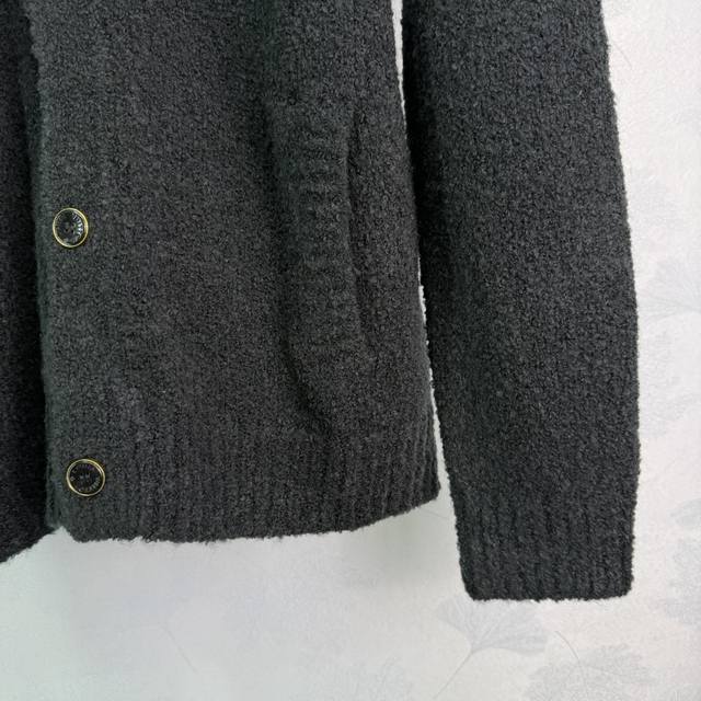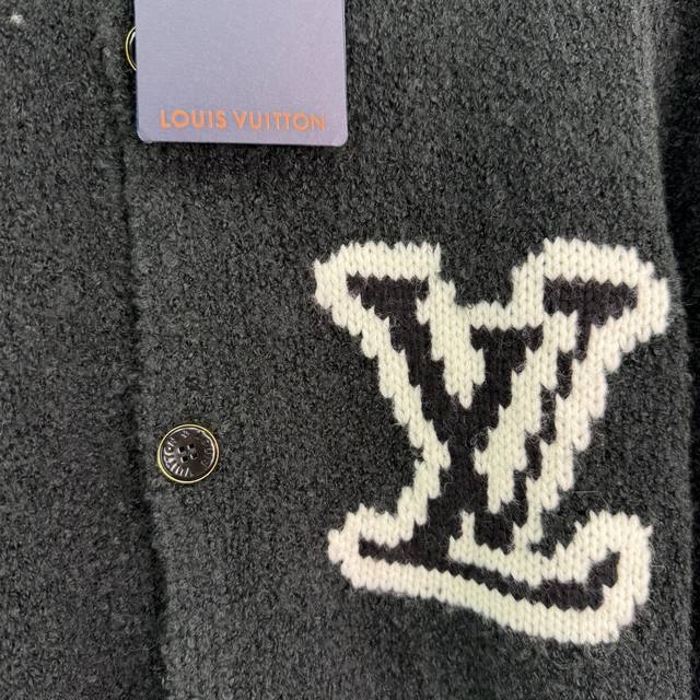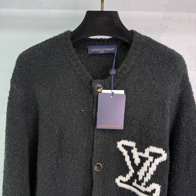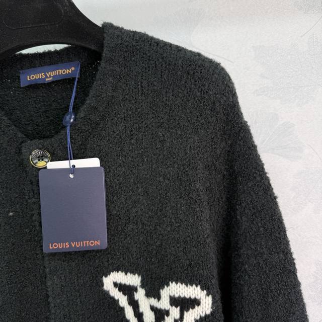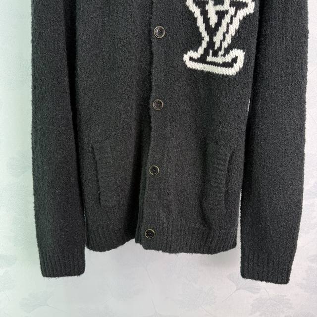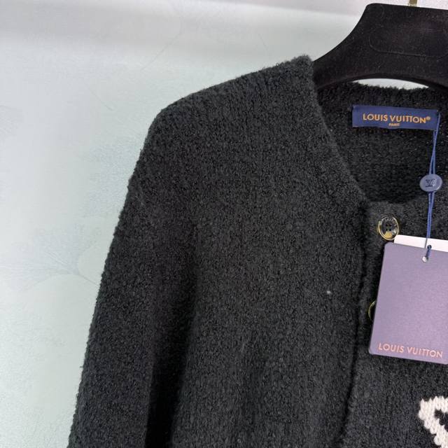 Lou*2025 Autumn/Winter New Jacquard Knit Cardigan, Custom Made with Yb Wool Yarn, Crafted with a Distinctive Texture. The cardigan features a tailored fit, button details, and an elastic ribbed edging. The front is adorned with floral and letter decorations. The overall design blends sophistication and casualness, creating a fashionable and uniquely branded style! Available in 1 color and 3 sizes: S, M, L, DDD