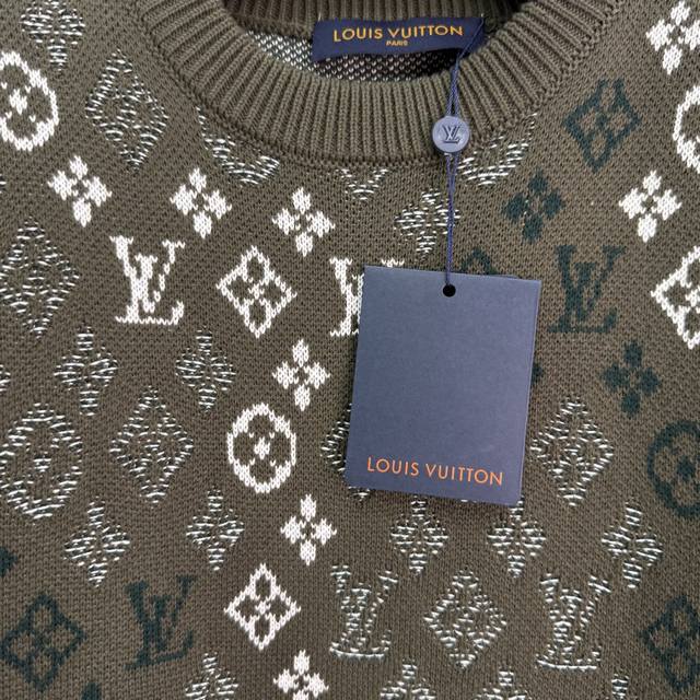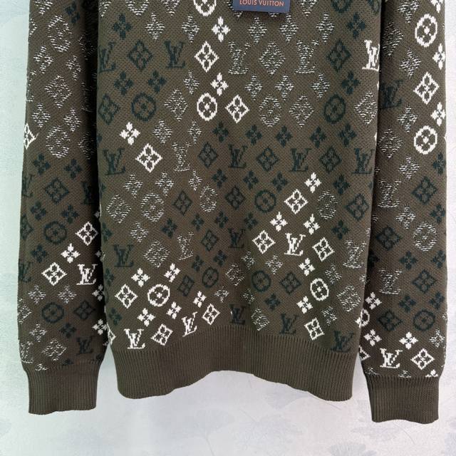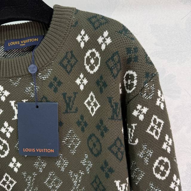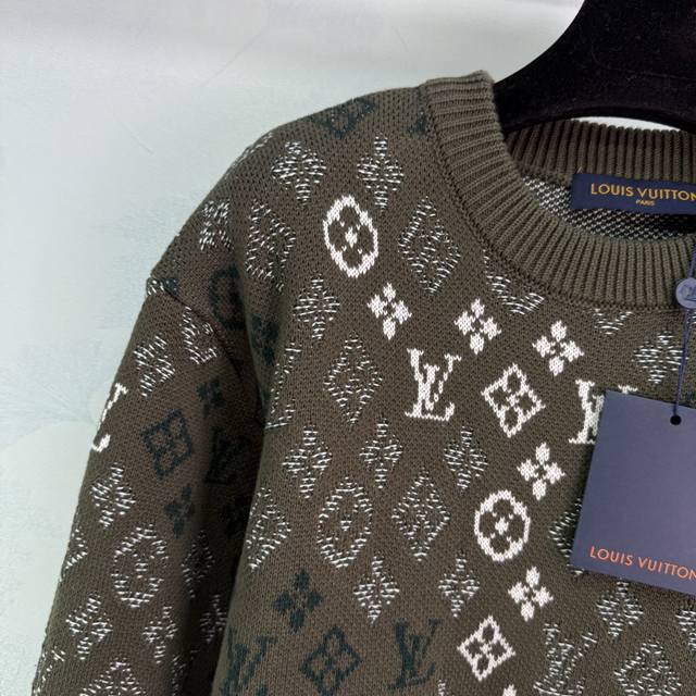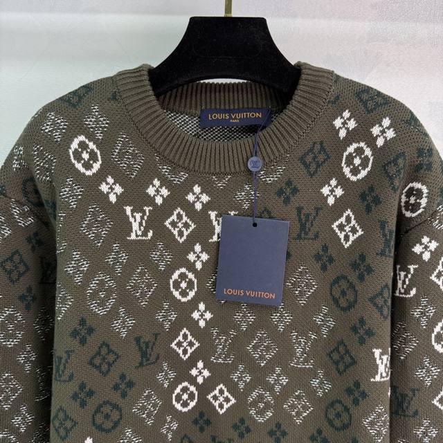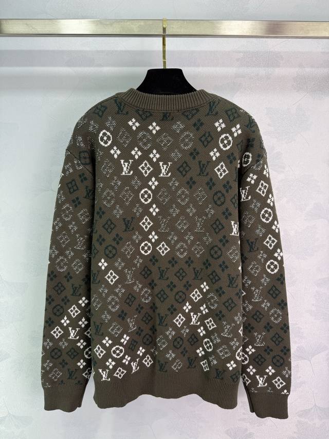 Lou*2025 Autumn/Winter New Jacquard Knit Pullover Sweater, Custom Made with Yb Cashmere and Wool Yarn, Crafted with Special Techniques, Showcasing a Distinct Texture. This loose-fitting pullover sweater features elastic ribbed trim and is adorned with a four-leaf clover jacquard lettering throughout. The irregular color combinations create rich layers, resulting in a sophisticated yet casual look with a fashionable flair, showcasing the brand's unique and trendy style! 1 Color, 3 Sizes: S, M, L, T226B. DDD