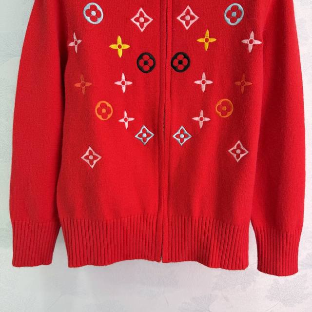 Lou*2025 Autumn/Winter New Stand Collar Zipper Embroidered Long Sleeve Cardigan! Made with custom wool blend yarn, this high-quality, soft, and comfortable cardigan features a stand collar, ribbed trim at the neckline and cuffs, and an all-over colorful four-leaf clover embroidered logo pattern that exudes brand style. A classic, simple, and versatile everyday cardigan for autumn and winter! Available in 4 colors and 3 sizes: S, M, L, T226B. DDD
