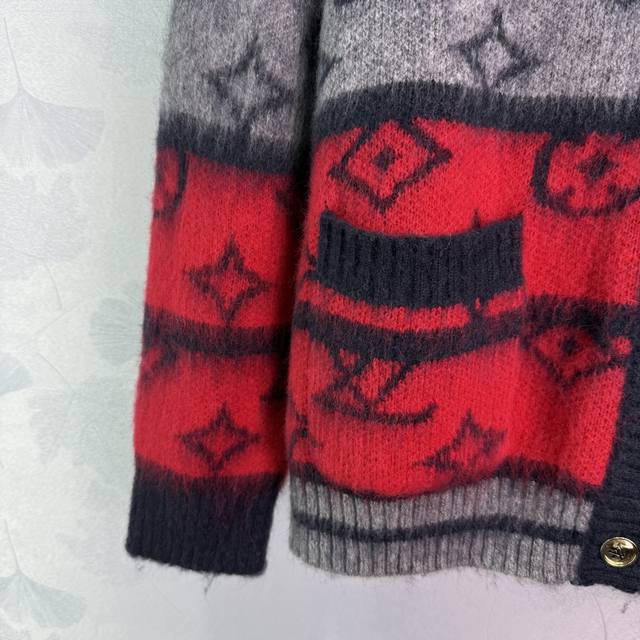 Lou*2025 Early Autumn New Knitted Cardigan! Made with custom imported wool and mohair, this cardigan offers exceptional comfort. The loose fit and gradient monogram print create a stylish and sophisticated look. The unique and high-end color-blocking effect, achieved through custom dyeing, is very well-designed. Multiple shades of the monogram print enhance the complexion and create a sophisticated look. It's a fashionable and timeless piece suitable for everyday wear, layering in autumn and winter. Unisex and perfect for couples, this cardigan is stylish and chic! Available in 1 color and 3 sizes: S, M, L, D, D.