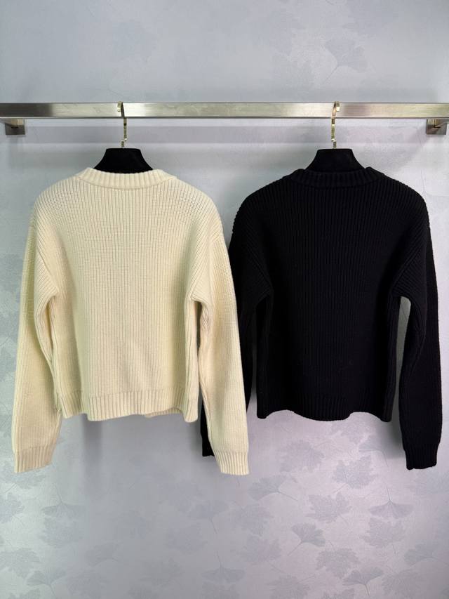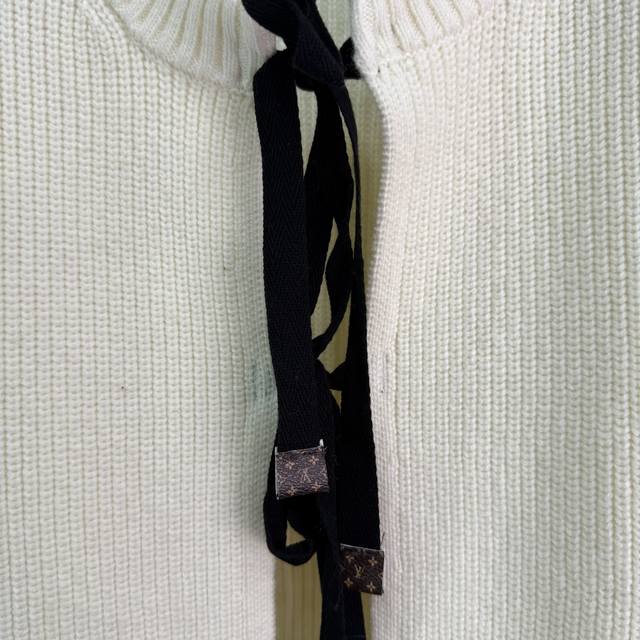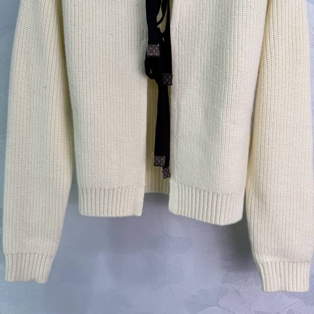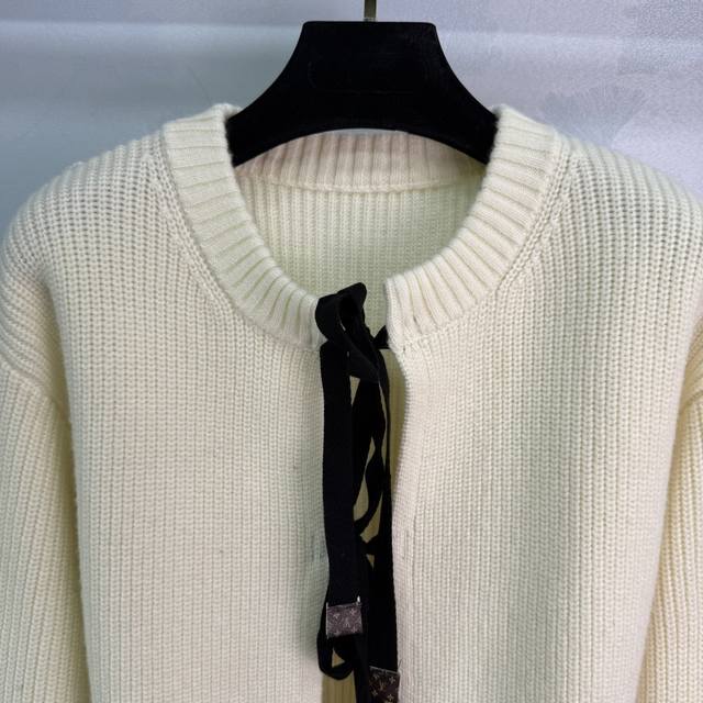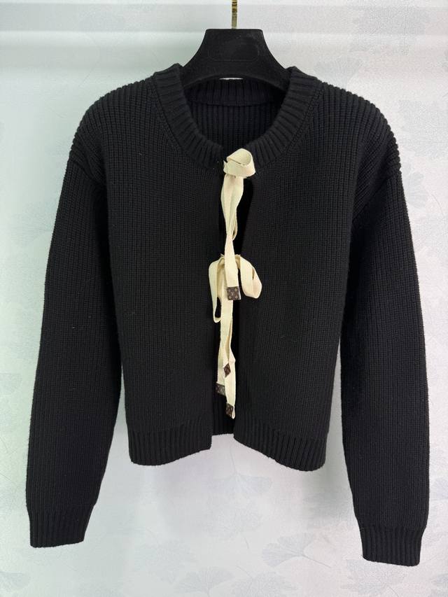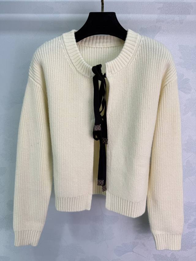 Lou*2025 Early Autumn New Round Neck Bow Tie Solid Color Knit Cardigan. Custom Yb wool yarn, delicate texture, comfortable to wear. Round neck knit cardigan with a simple, solid color design in a plain knit, exuding style. The ribbed trim is fitted and the stretchy fabric hugs the body for a slimming effect. The bow tie at the front and the leather label at the end, featuring a four-leaf clover and lettering, showcase the brand's style. A versatile style suitable for all ages and skin tones, flattering and fashionable! 2 colors, 3 sizes: S, M, L, D, D