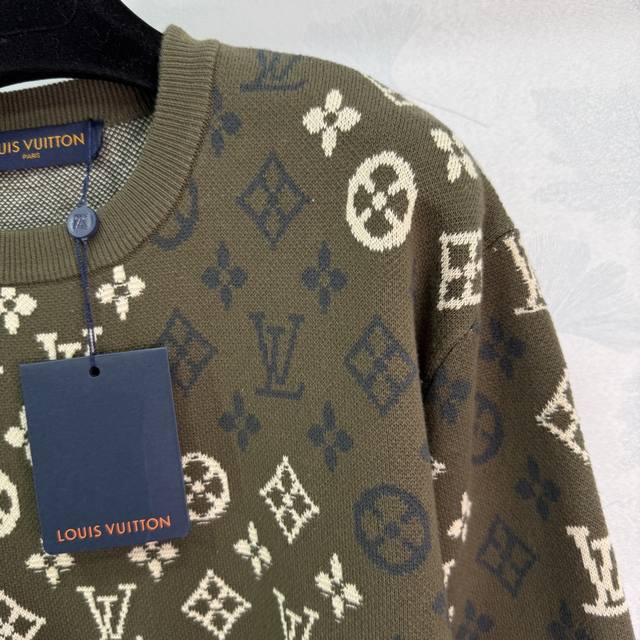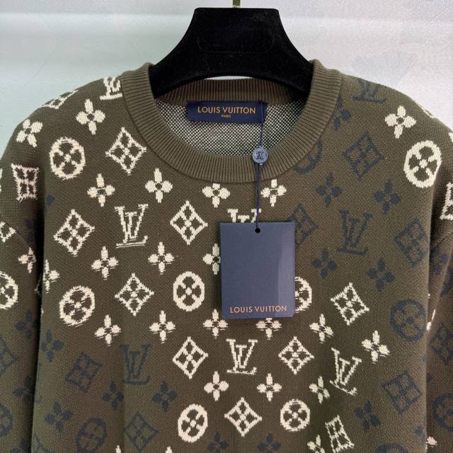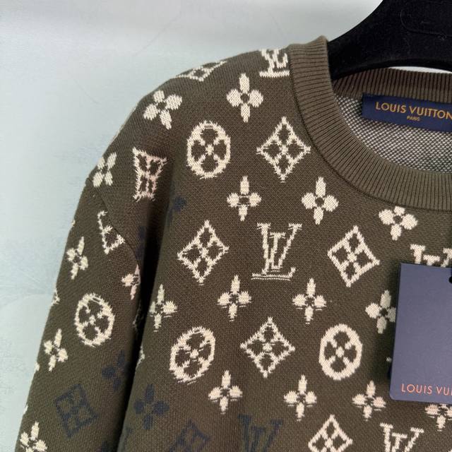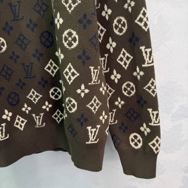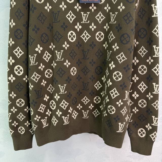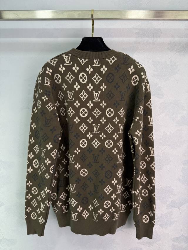 Lou*25 Autumn/Winter New All-over Logo Knit Pullover Top, 90% Wool + 10% Cashmere Fabric, Soft and Comfortable to the Touch, Classic Monogram Design, Loose Fit, Versatile for Autumn and Winter! 1 Color, 3 Sizes: S, M, L, T226B. DDD