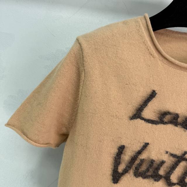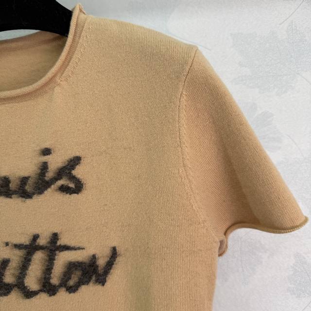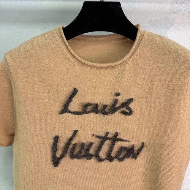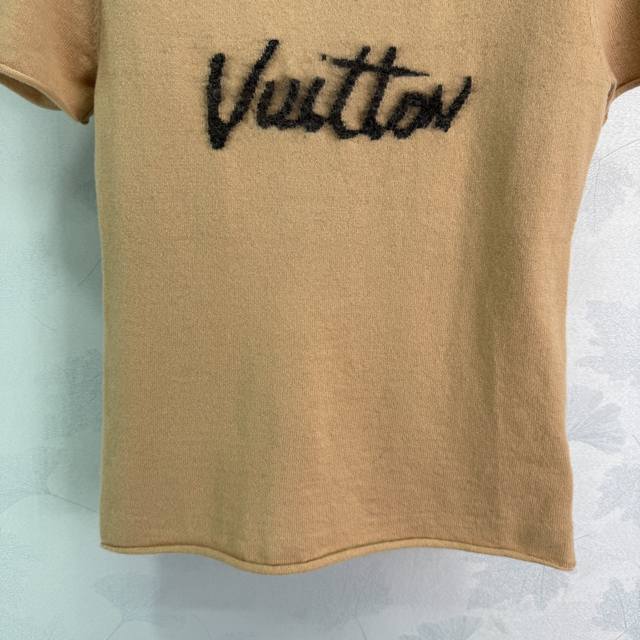 Lou*25 Early Autumn New Letter Logo Knit Sweater, Soft and Super Comfortable Material, Round Neck Short Sleeve Design, Highly Recognizable Black Letter Embroidery on the Chest, 1 Color, 3 Sizes Sml DDD