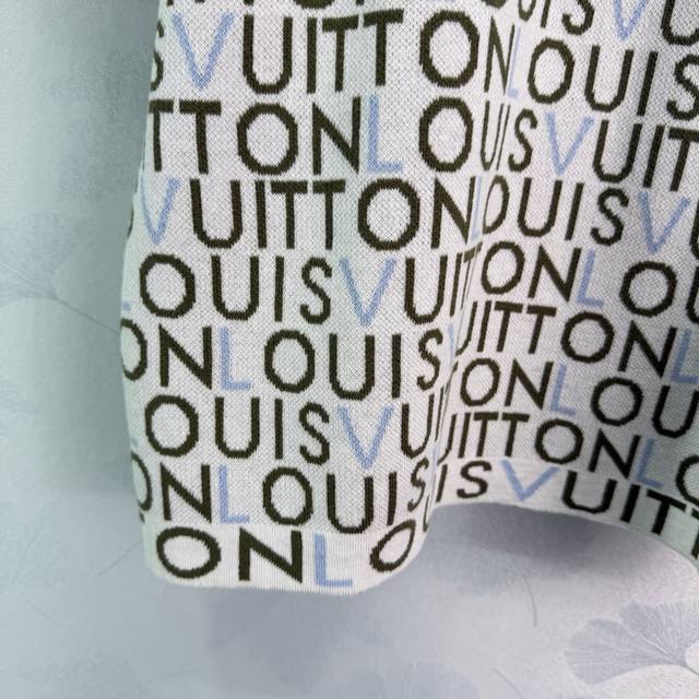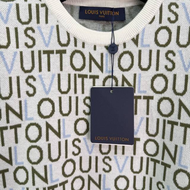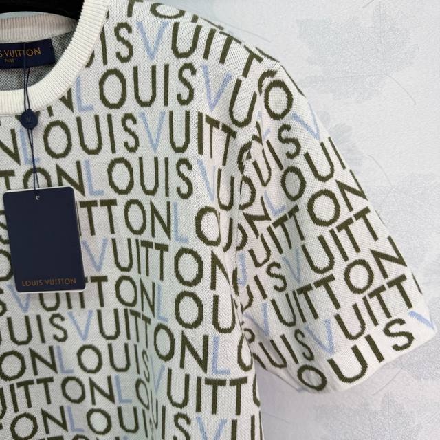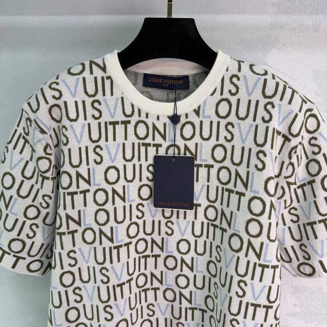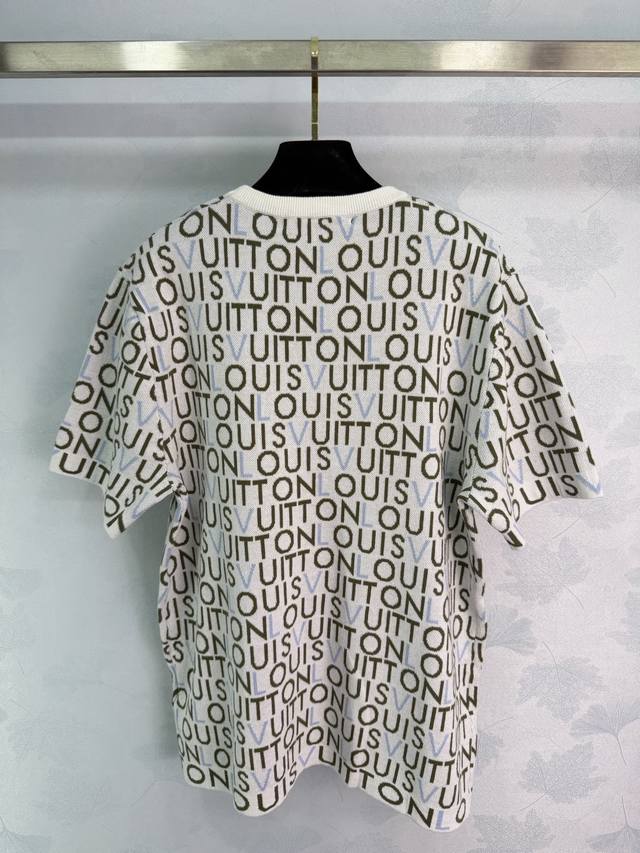 Lou*26 Early Spring New Classic Monogram Knit Sweater, soft and comfortable, super versatile for everyday wear. White base with colorful logo, exuding luxury. The round neck design is simple and elegant, and the short sleeves make it easy to style for both casual and streetwear looks. It pairs well with jeans or sweatpants! 1 color, 3 sizes: S, M, L, T226B. DDD