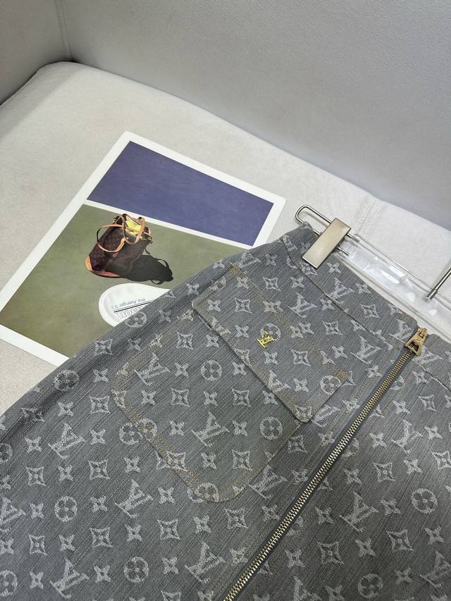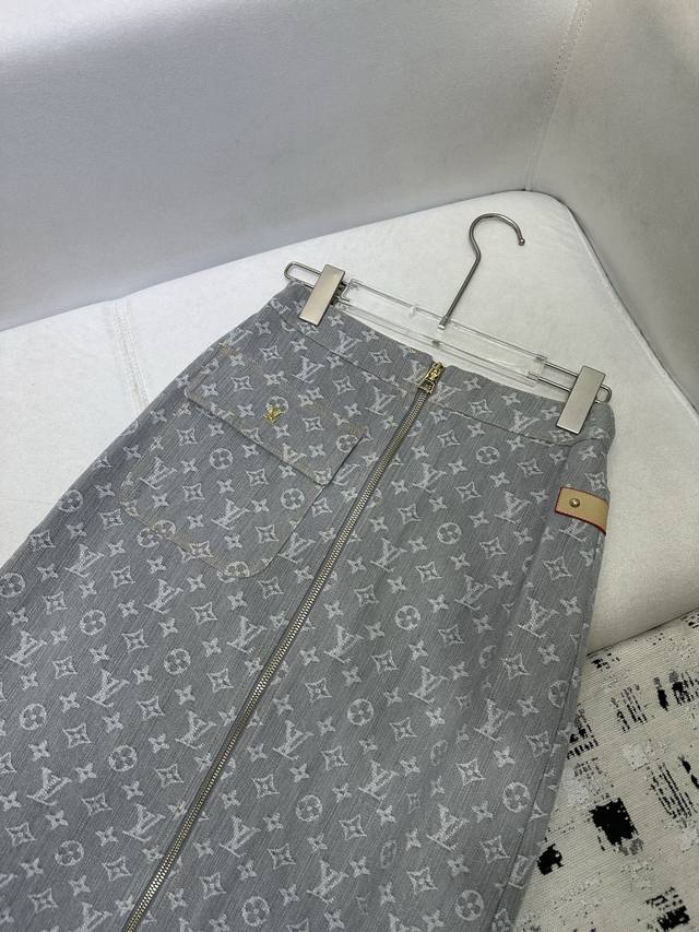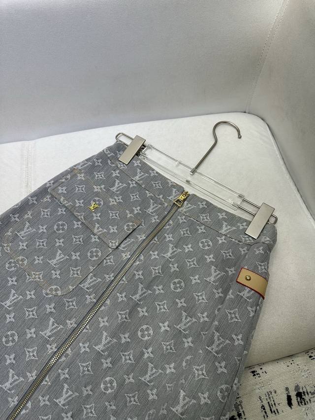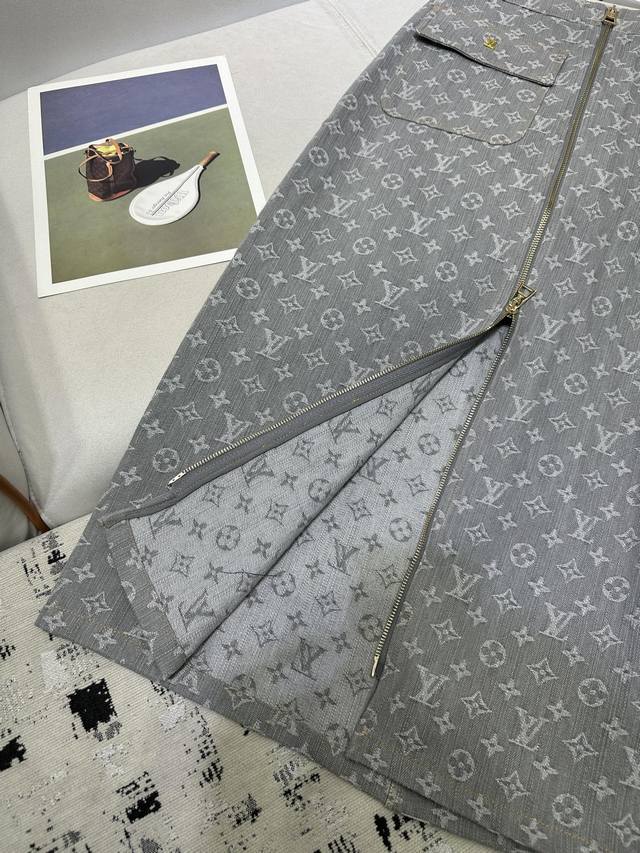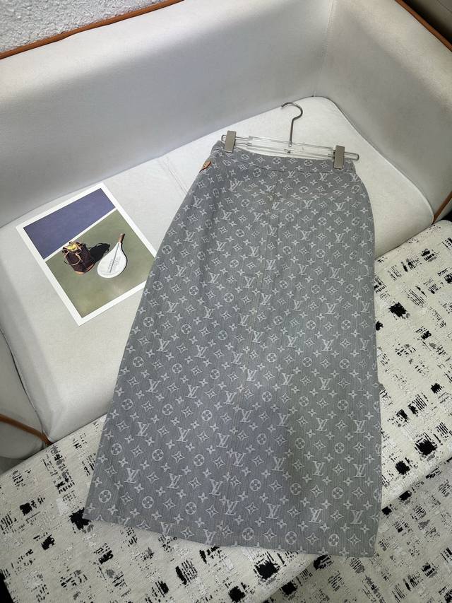 louis Vuitto* 25Ss new denim skirt denim old flower jacquard fabric fashionable and generous single color three sizes Sml