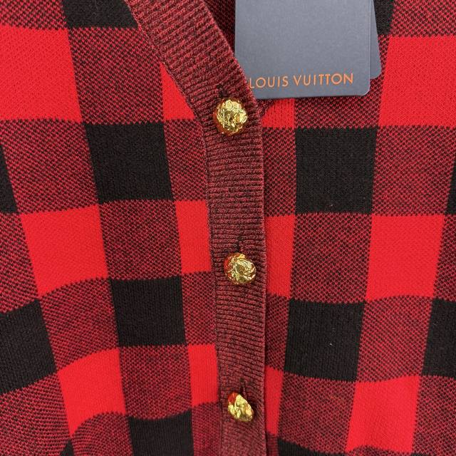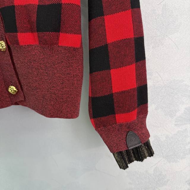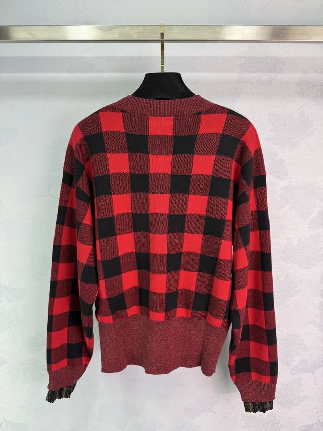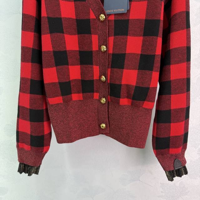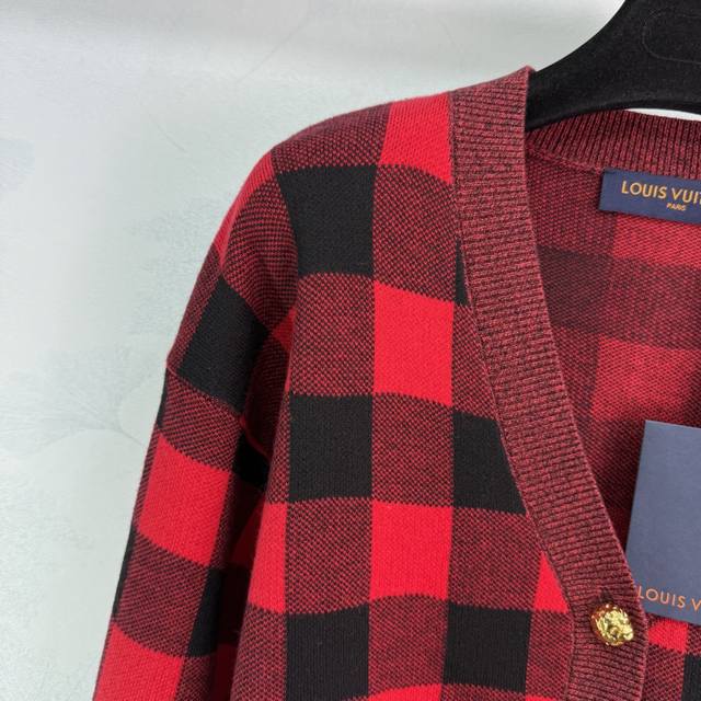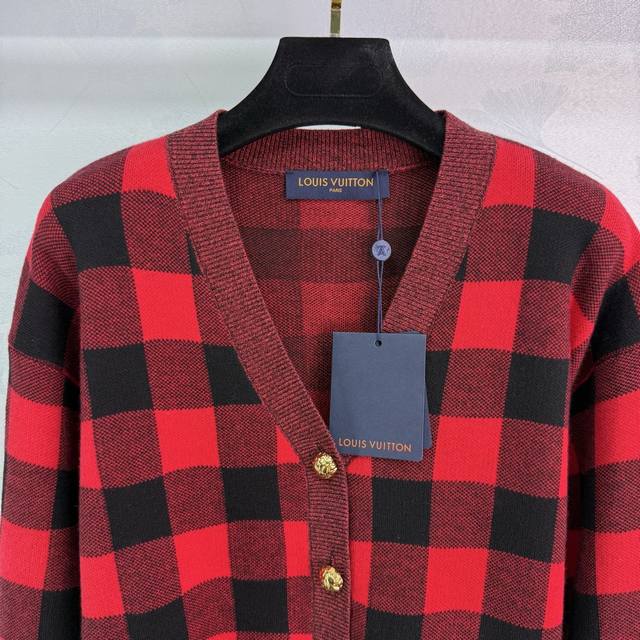 Lou*'s latest 2025 Early Fall collection! Checkered knitted V-neck long-sleeved cardigan, synced with the official website! Custom-woven cashmere and wool yarn, soft, comfortable, and stylish. The V-neck cardigan is tailored to flatter the head-to-shoulder ratio for a slimming effect. The all-over red and black checkered pattern features a single-row button-down plaid cuffs with black binding and a leather logo accent. A strong retro style. Regular fit with an elastic waist and a sculpted fit for a sweet and stylish look! 3 sizes per color (Sml