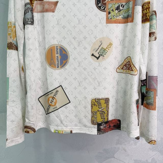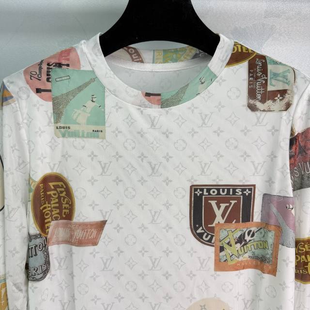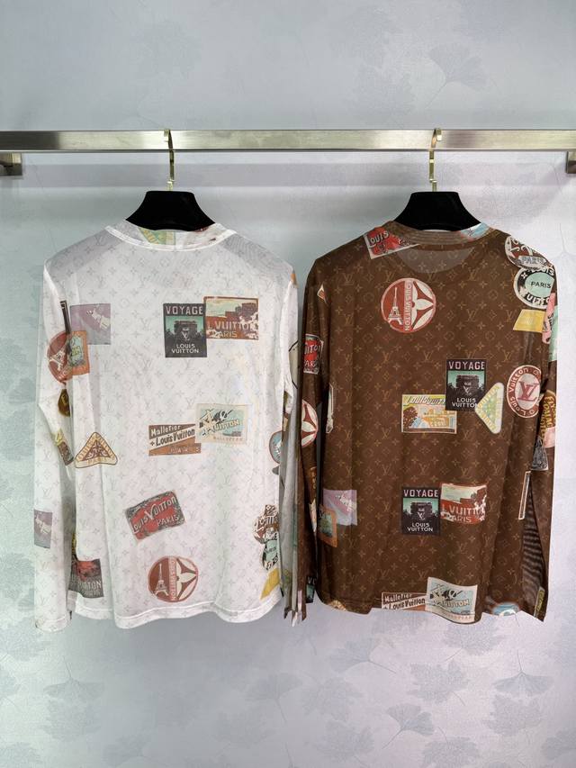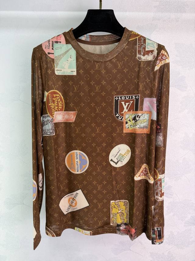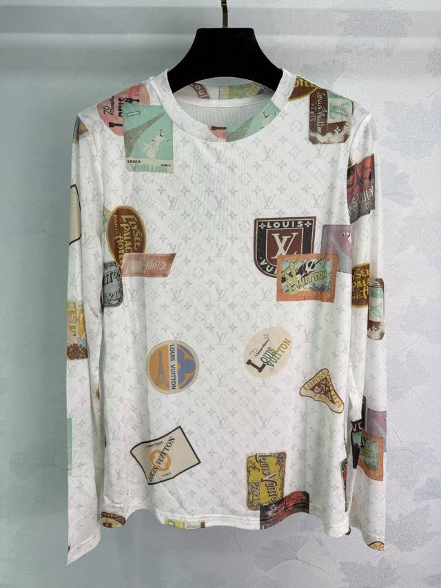 Lou*'s new 2025 early fall mesh stretch base shirt! Custom-made from imported mesh, this comfortable and breathable round-neck long-sleeved base shirt is cut to size. Printed with newspaper letters and travel emblems, the shirt showcases the brand's playful and fashionable style. A slim, regular fit creates a sophisticated look. A must-have for everyday fashion! Available in 2 colors and 3 sizes: Sml