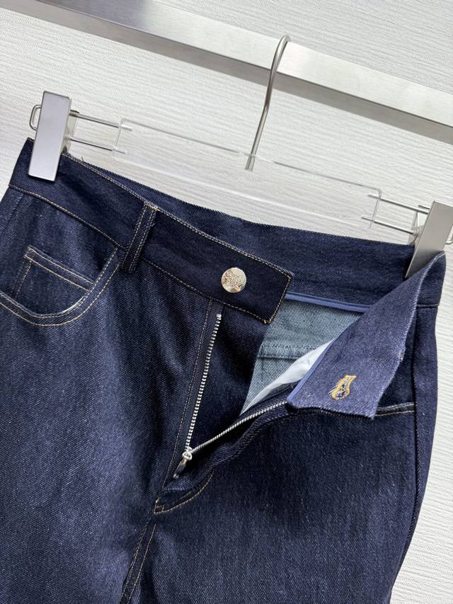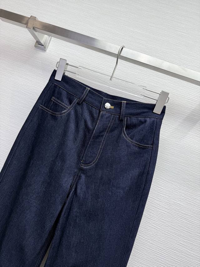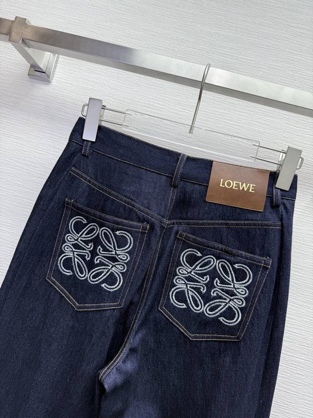 Lowe* 25Ss New Denim Wide-Leg Pants, Back Pocket Logo Embroidery Decoration, Hig