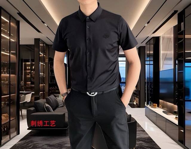 Lp Loyo Pianya 2025 Spring and Summer new men's original casual short-sleeved shirt official website simultaneous sale Simple and fashionable all-match high-end quality seamless cutting hemming embroidery logo pattern design Customized imported nylon spandex Tencel cotton fabric with great elasticity and wrinkle-free Customized hardware accessories Comfortable to wear and breathable High-grade texture Simple and generous decent fashion without losing personality Upper body casual casual handsome and stylish showing the temperament of a big brand. Size: M-4Xl Maximum wearable is about 195 pounds Please report height and weight when placing an order Shipment the next day