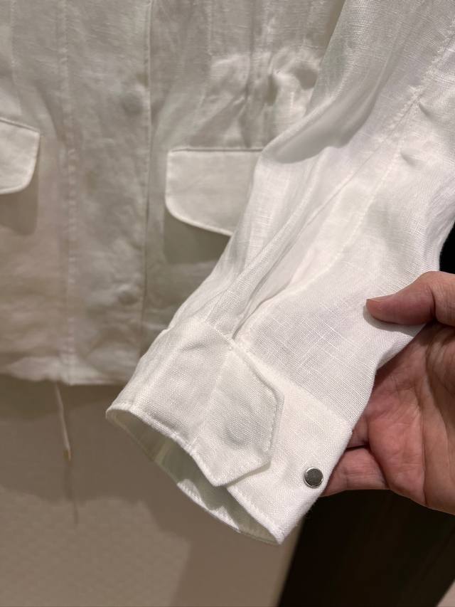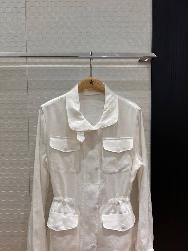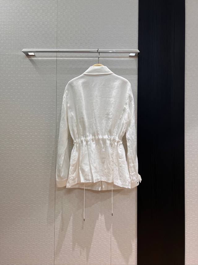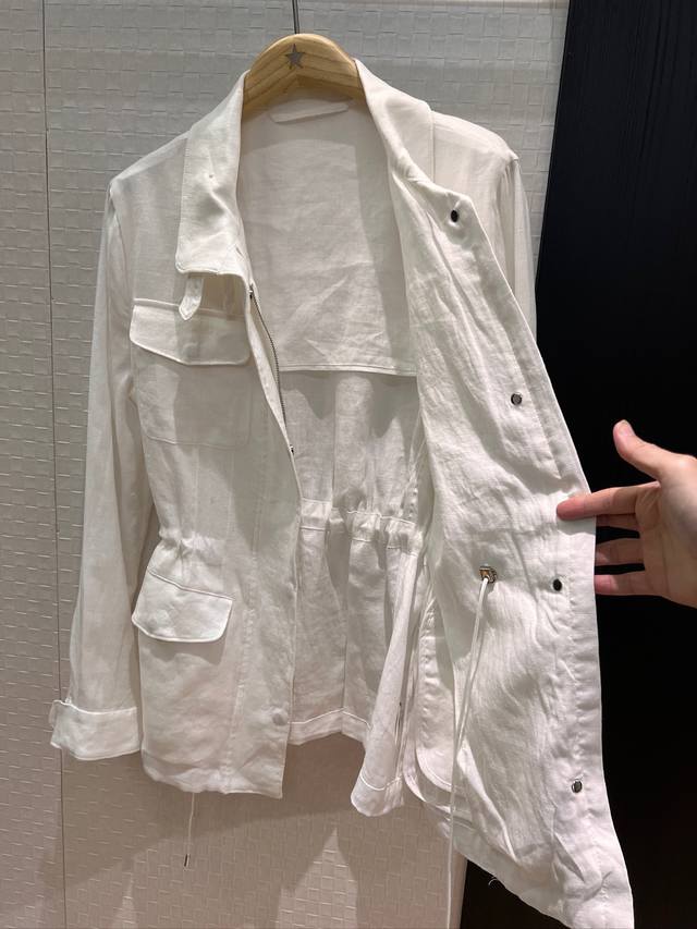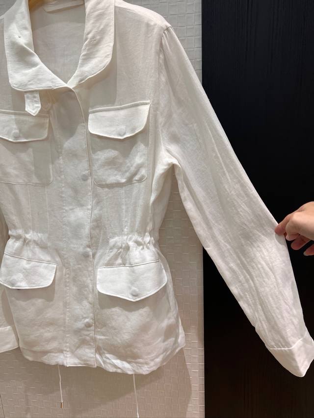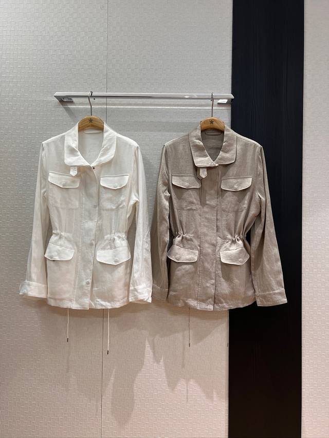 Lp new lapel four-pocket linen jacket can be used as sun protection, breathable and comfortable waist drawstring design, casual vacation, salty or sweet khaki white Sml