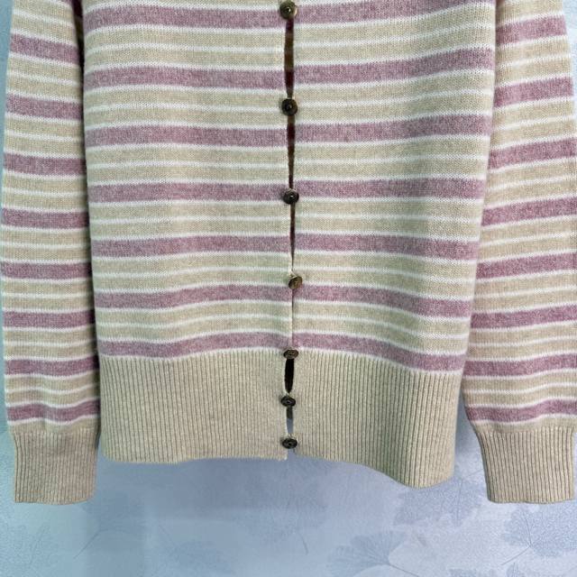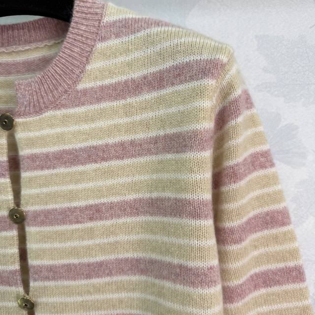 Lp*25 New early fall high-end colorway striped knitted cardigan! Gentle and elegant, with a simple and charming style. Custom wool and cashmere yarn is incredibly soft and delicate! A must-have for every elegant woman! A versatile and casual piece that can be worn with anything! 2 colors and 3 sizes Sml T226B.