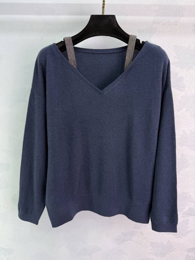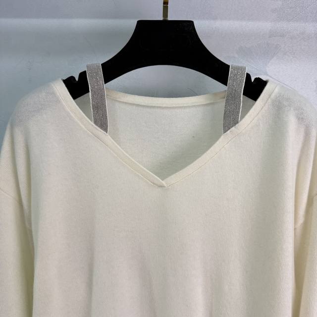 Lp*25 New Early Fall V-neck sweater, two-piece set. Diamond-embellished shoulder straps. Soft and comfortable fabric. The V-neck design creates a slimming effect, highlighting a stylish and luxurious look. Perfect for wearing alone or layering, this sweater is the perfect choice for all seasons! 2 colors, 3 sizes. Sml T226B.