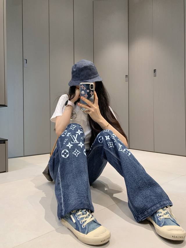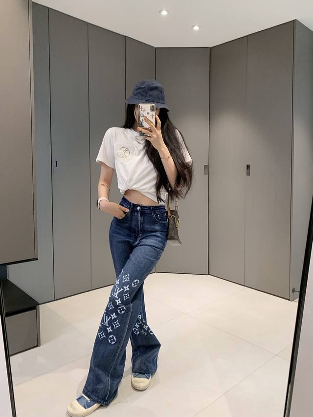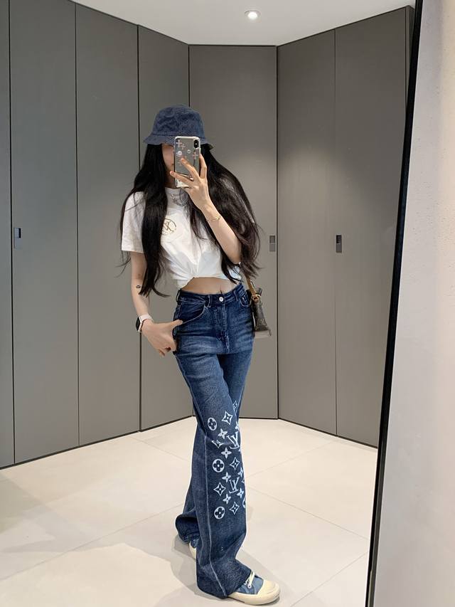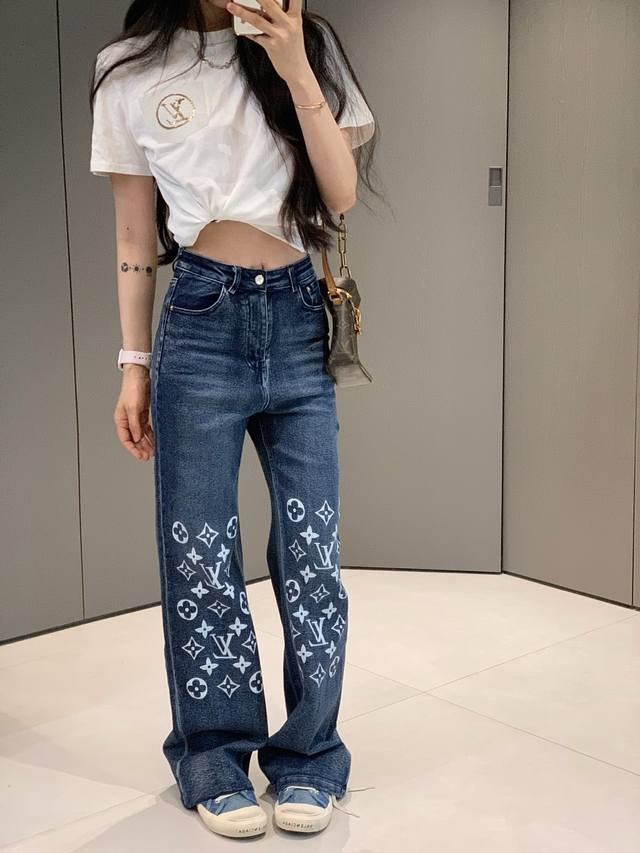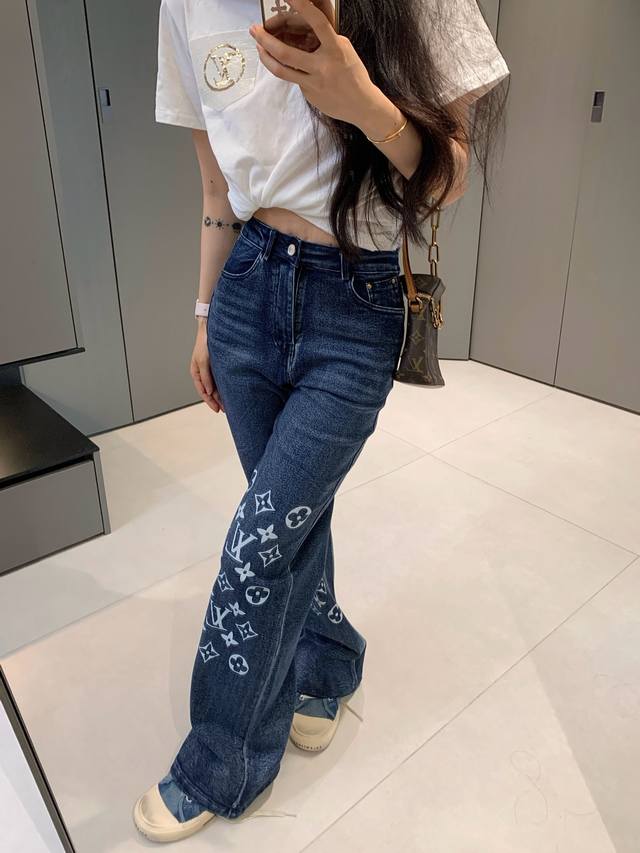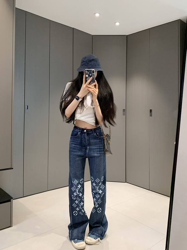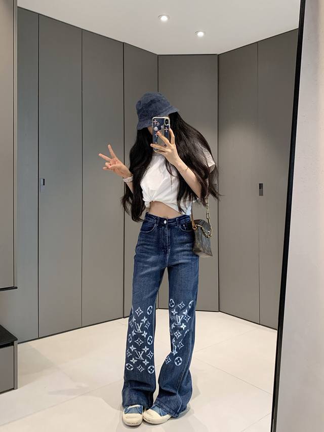 L's 25Ss latest model old flower patchwork design straight high elastic jeans ar