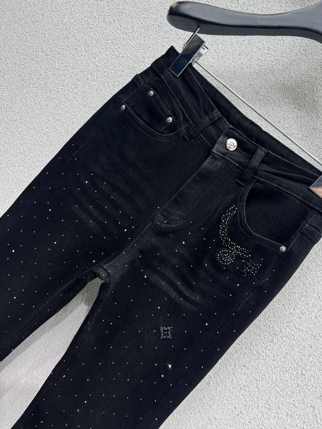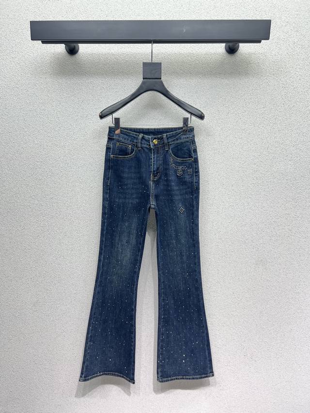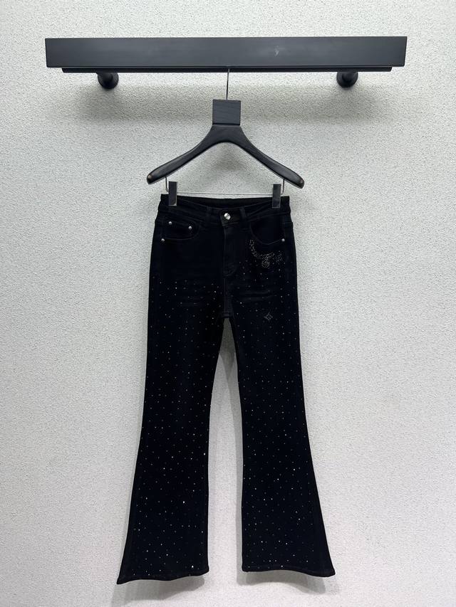 L's heavy-duty rhinestone high-waisted stretch flared jeans. High-waisted, slimming, hip-lifting, and leg-lengthening. Made of pure cotton with a slight stretch, these flared jeans look great with any T-shirt in winter. Available in two colors (S, M, L, X, L, D, D).