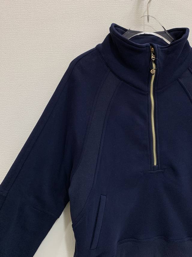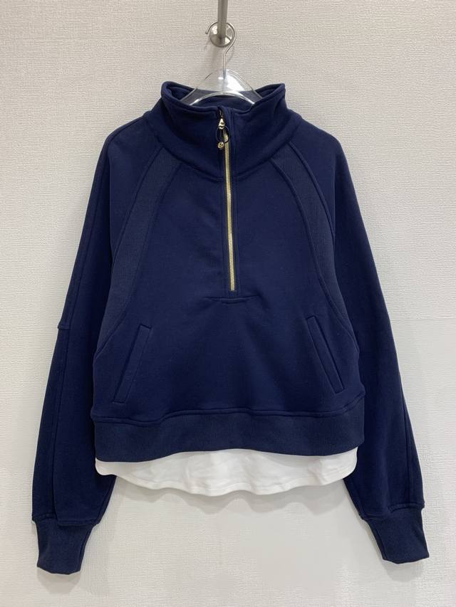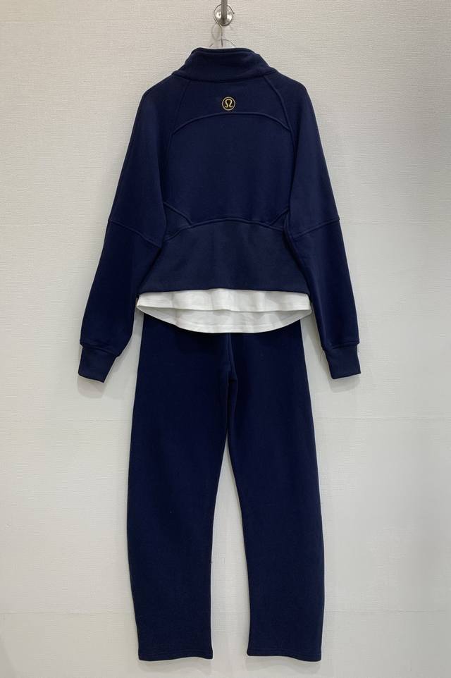 Lulu Simple and Stylish Half-Zip Stand Collar Fleece-Lined Cotton Casual Sports Suit DDD Sizes: S, M, L DDD M Size: Chest 104cm, Length 60cm, Waist 66cm+, Length 108cm DDD
