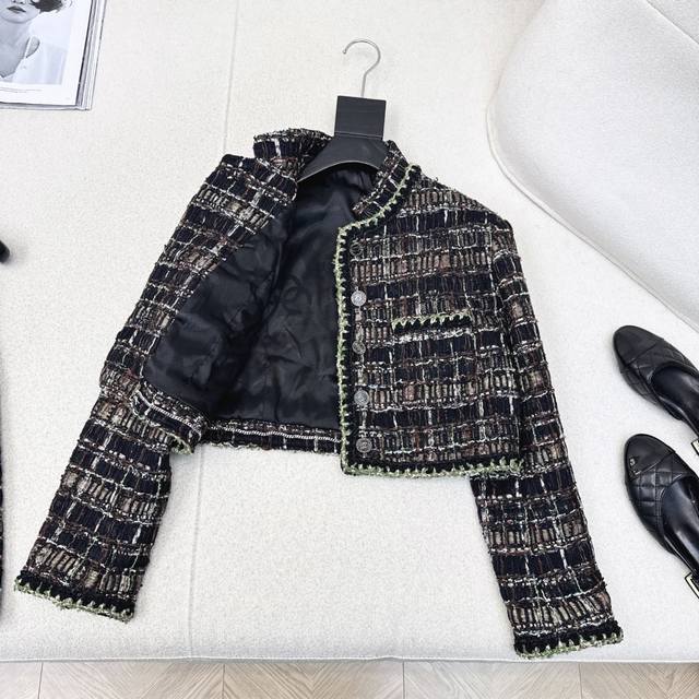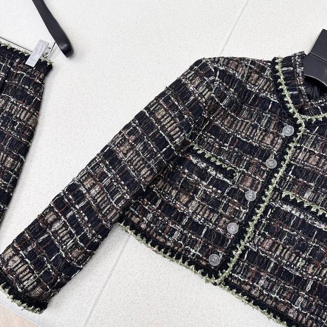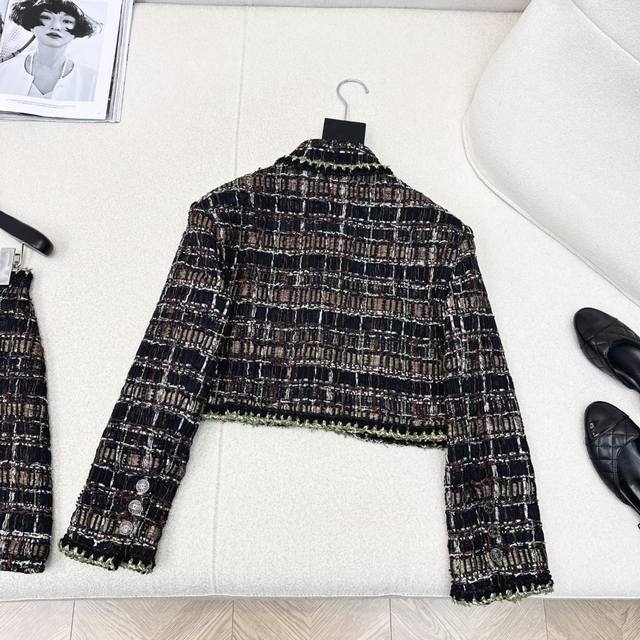 Luxury and high-end C family 25Ss latest autumn and winter catwalk same style woven suit Short stand-up collar woven jacket + high waist A-line skirt Yb developed heavy woven fabric + hemming process full of details, very high-end upper body with elegance and nobility, whether it is daily or commuting Ok The short version is also not picky at all The same color is found separately for sale Sml S size: Jacket shoulder width 40 Bust 92 Length 42 Skirt Waist 64 Hips 92 Skirt Length 42 Manual measurement may have errors Jacket 470 Skirt 270