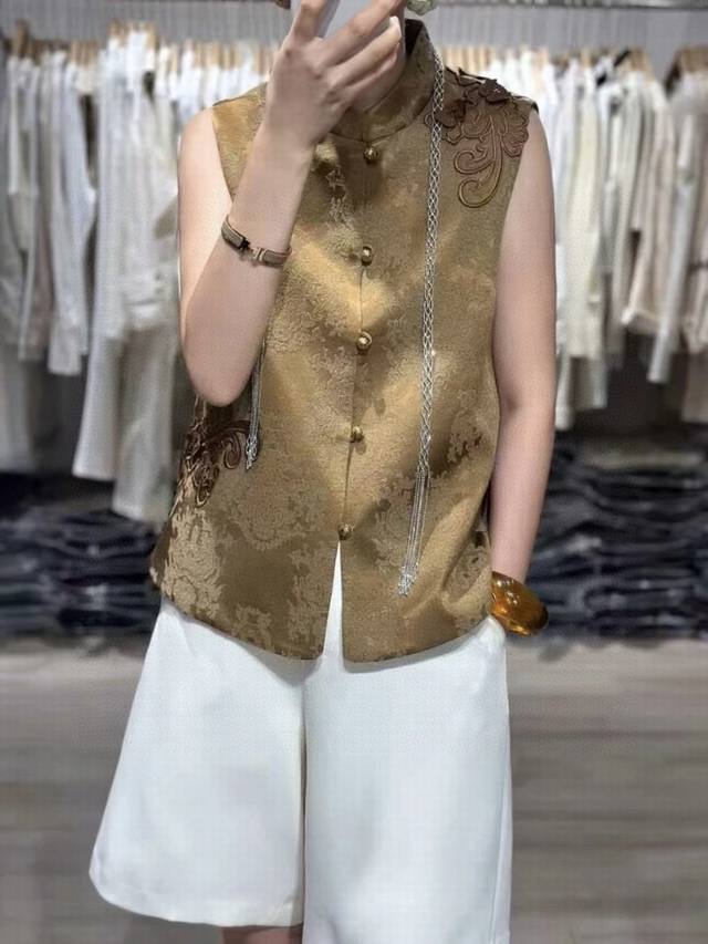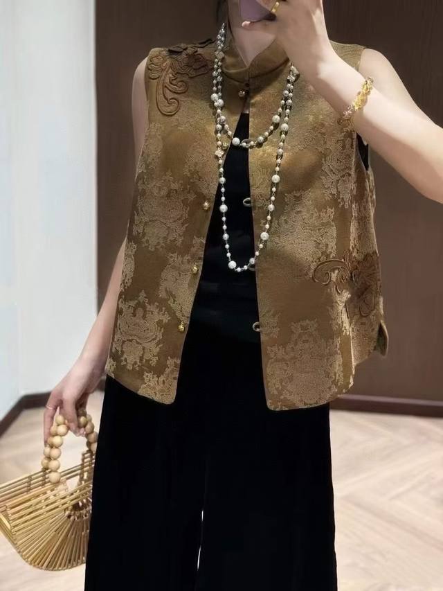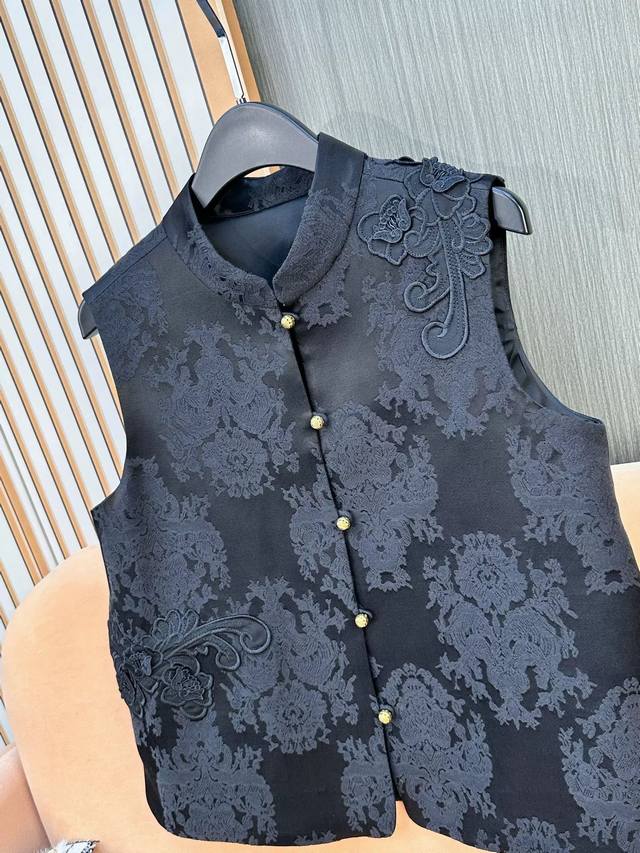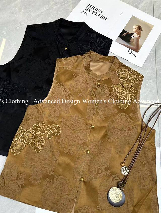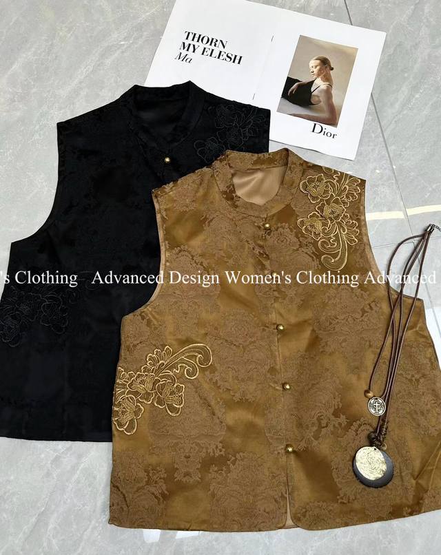 Luxury rayon jacquard vest, the surface of the rayon jacquard fabric presents a soft luster, the pattern texture is delicate and three-dimensional, showing an unobtrusive high-end texture. Two-color Smlxl