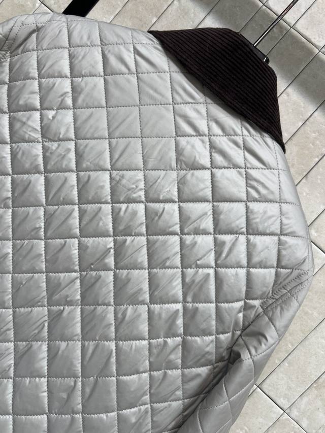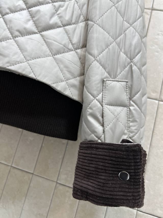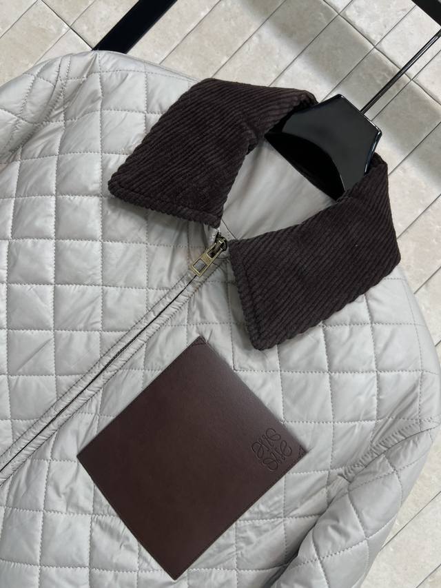 Lw's 2025 Autumn/Winter New Corduroy Collared Diamond Pattern Cotton Jacket. Classic diamond quilting + corduroy collar and cuffs, retro and fashionable! The quilted design provides excellent windproof and warmth, perfect for autumn and winter. The logo leather patch detail on the chest adds a unique touch and high recognizability. The short design + double-layered hem is slimming and windproof. Suitable for commuting and dates, versatile and flattering, looks good with anything! Pair with jeans or a skirt for an easy autumn/winter look. Available in four sizes: S, M, L, X, DDD