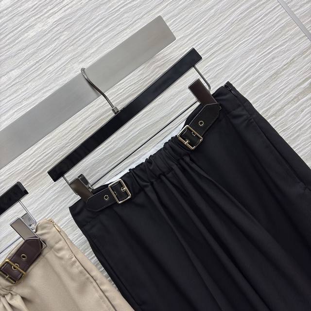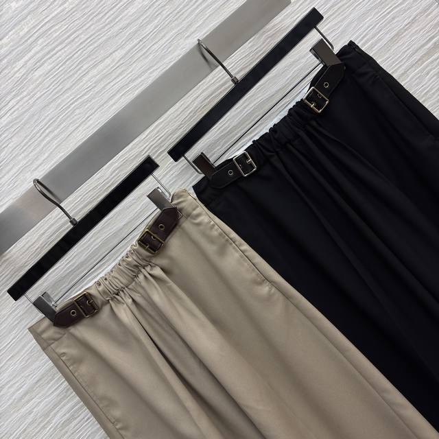 Lw's 25 new leather buckle elastic pleated high waist straight wide leg pants. The elastic high waist wide leg pants can instantly pull out the long legs. The textured fabric is used. The classic version of the upper body is not picky about the figure. It is slimming and whitening. It is also versatile. Pair it with the same series of tops. It is refreshing and age-reducing. Two colors Smlxl