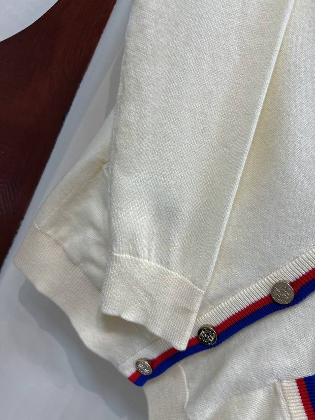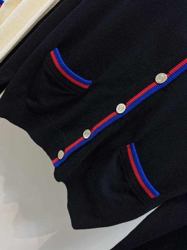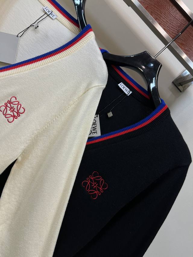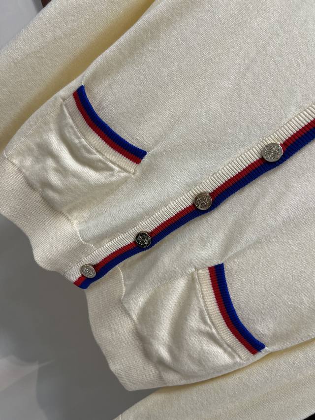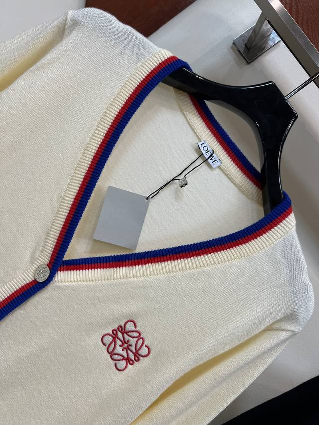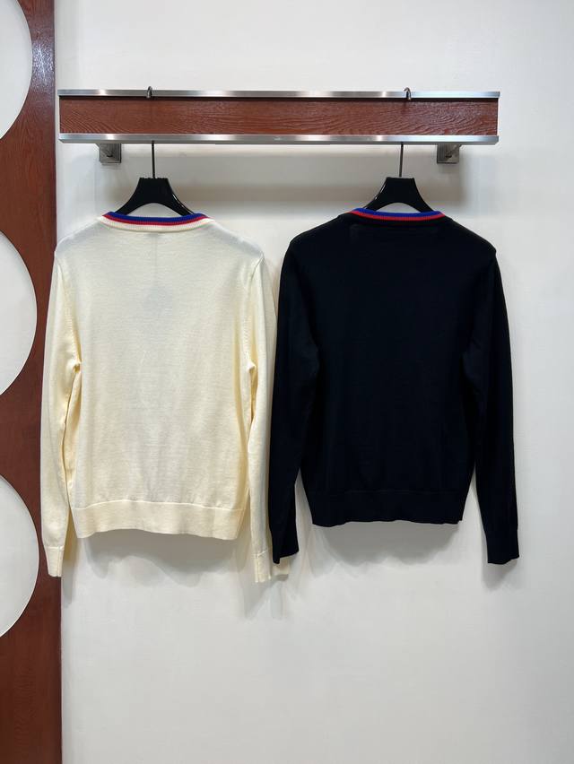 Lw's 25th early autumn new badge embroidered knitted series round neck top V-neck cardigan classic loose version contrast color binding design upper body slimming and versatile chest logo badge embellishment simple yet classic durable and easy to grasp the age-reducing girlish feeling, sweet or cool and fashionable high-grade wool blend fabric workmanship quality online two colors three sizes Sml