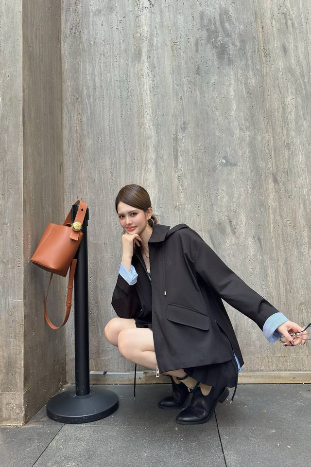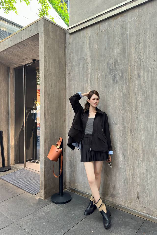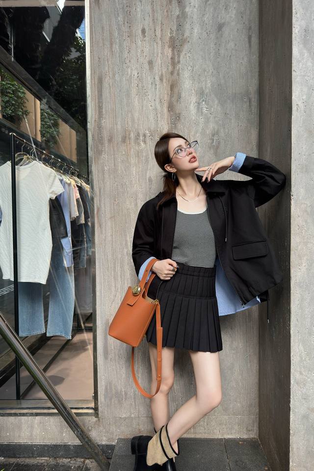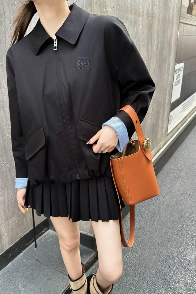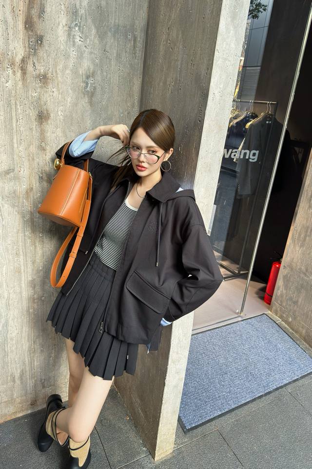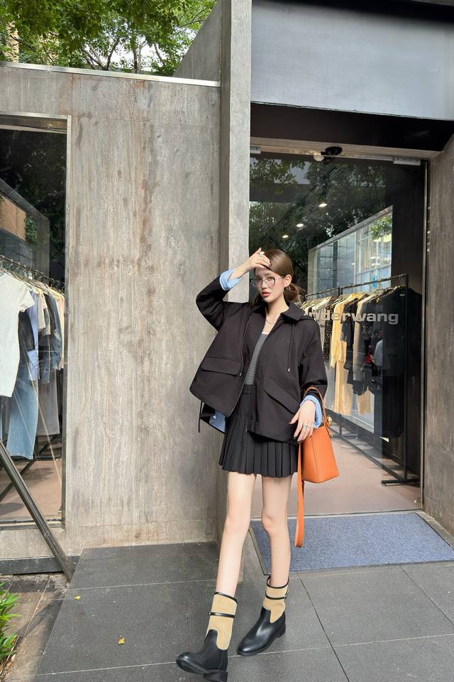 Lw's 25th early autumn new fake two-piece spliced hooded windbreaker jacket with drawstring pockets and detachable hood design. Youthful and age-reducing classic logo embroidery embellishment. Short front and long back hem drawstring + back slit design spliced blue striped lining details are super good. The fake two-piece design adds a sense of layering without looking bloated. It has a casual and cool feel. Recommended for daily outings. Easily get a sweet and cool girlish temperament. Two colors and three sizes. Size SML High quality