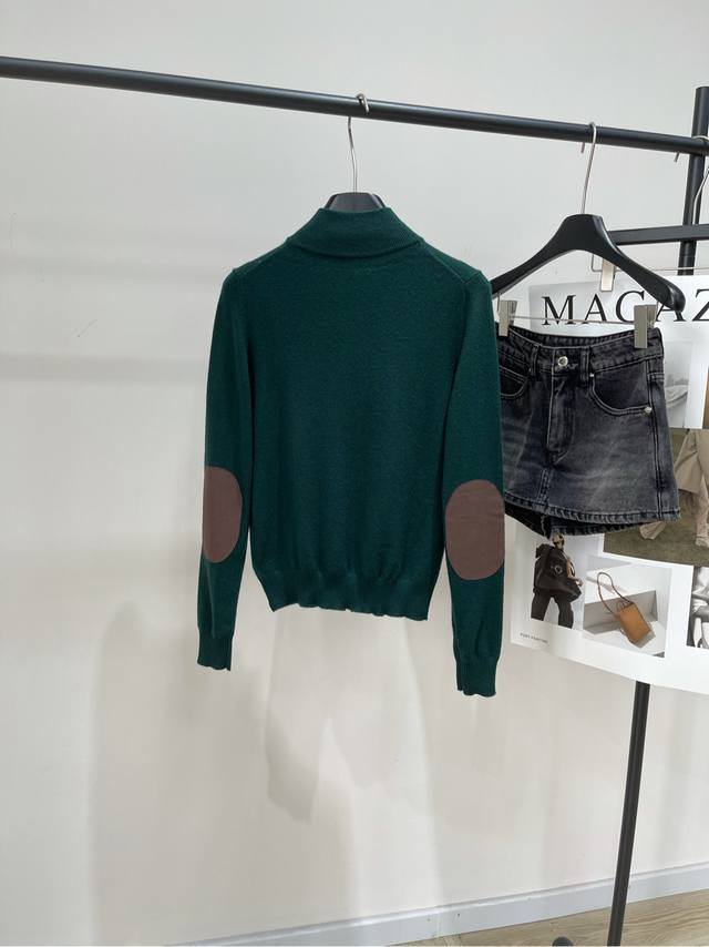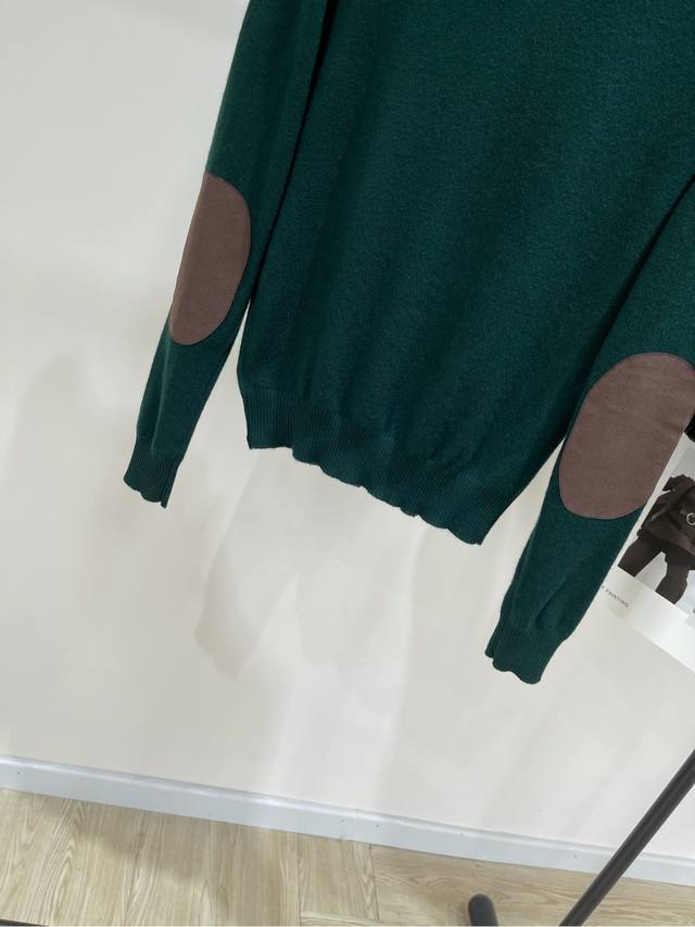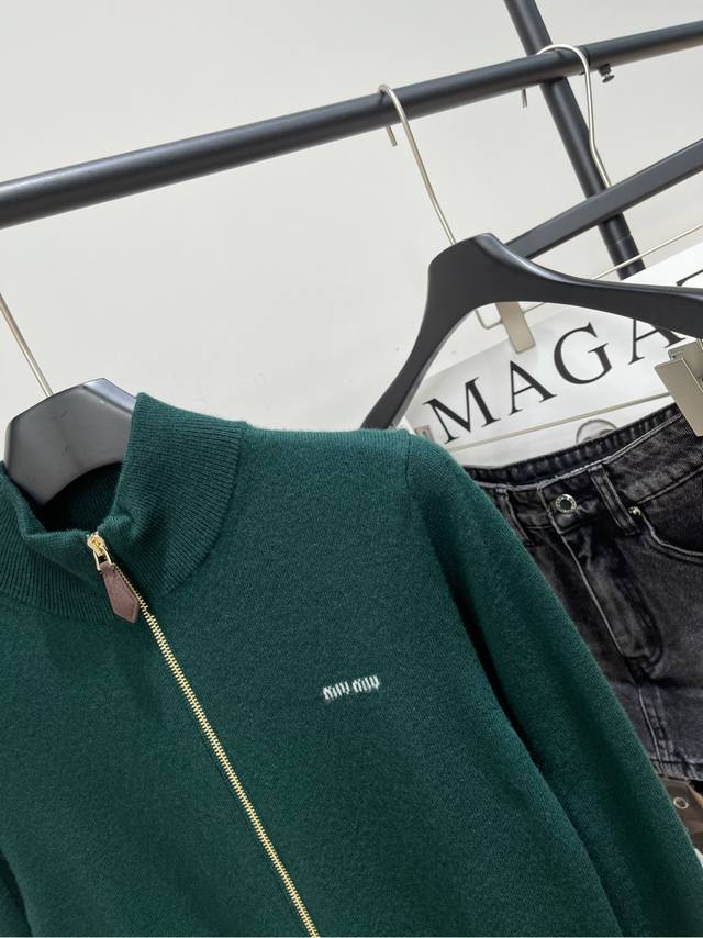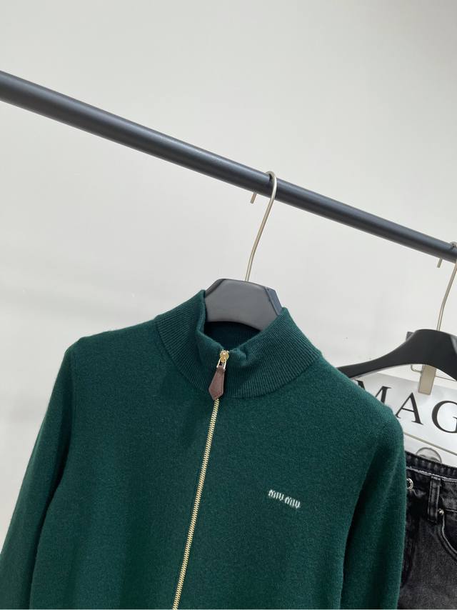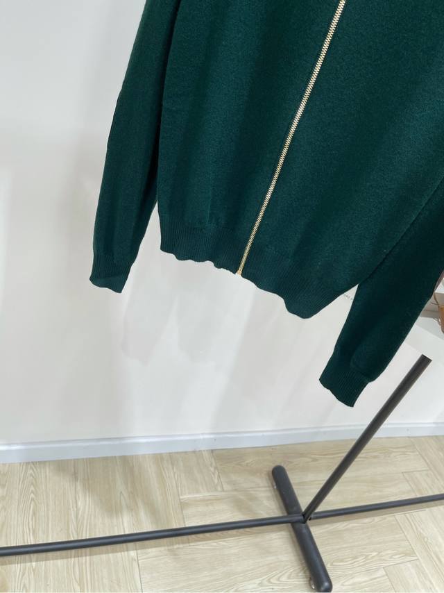 / M Dark Green Patchwork Cashmere Stand Collar Zipper Cardigan . Fabric: Cashmere