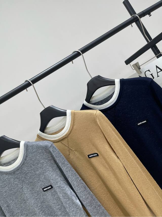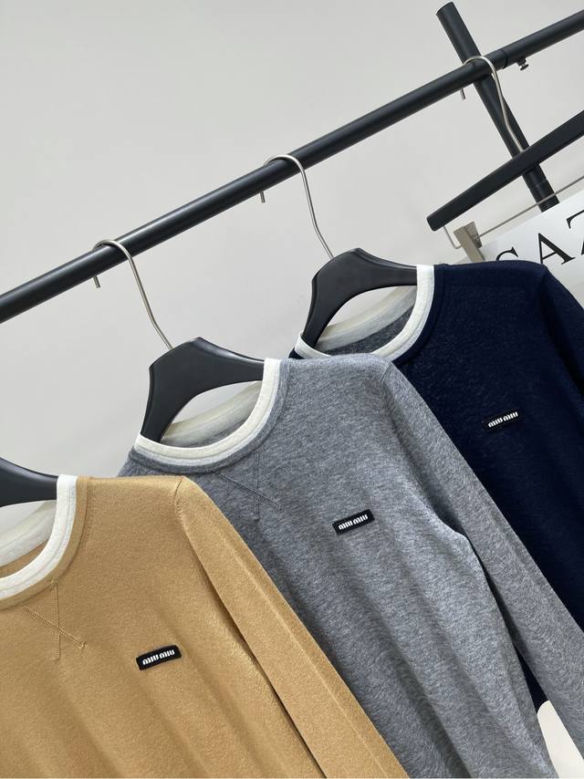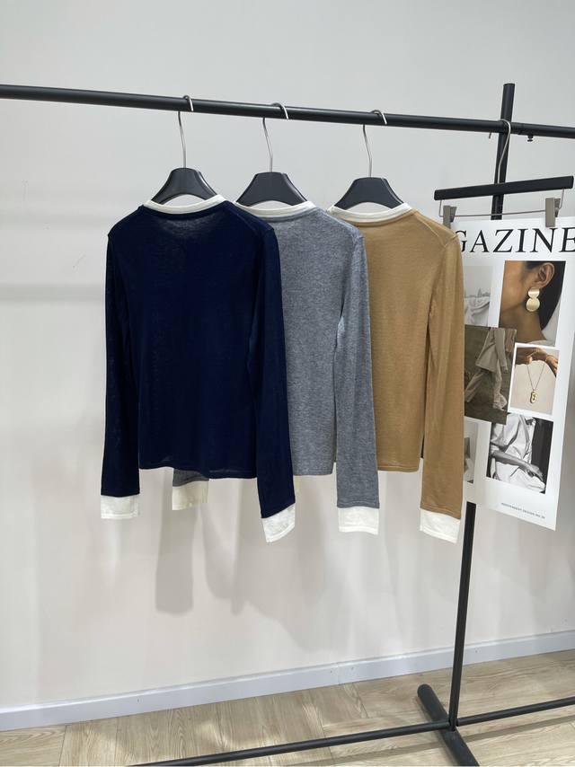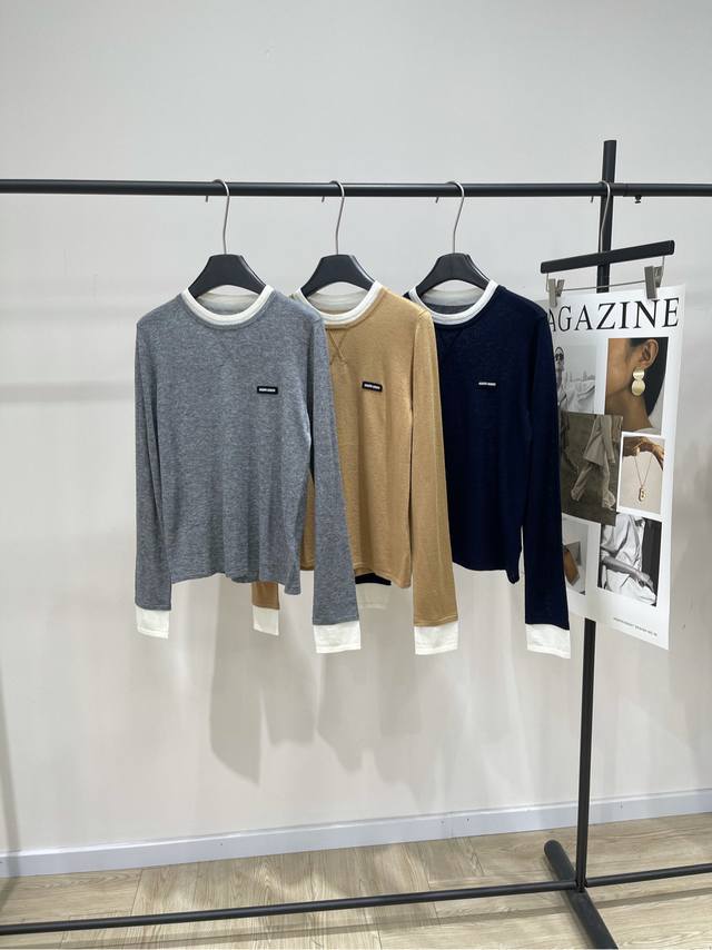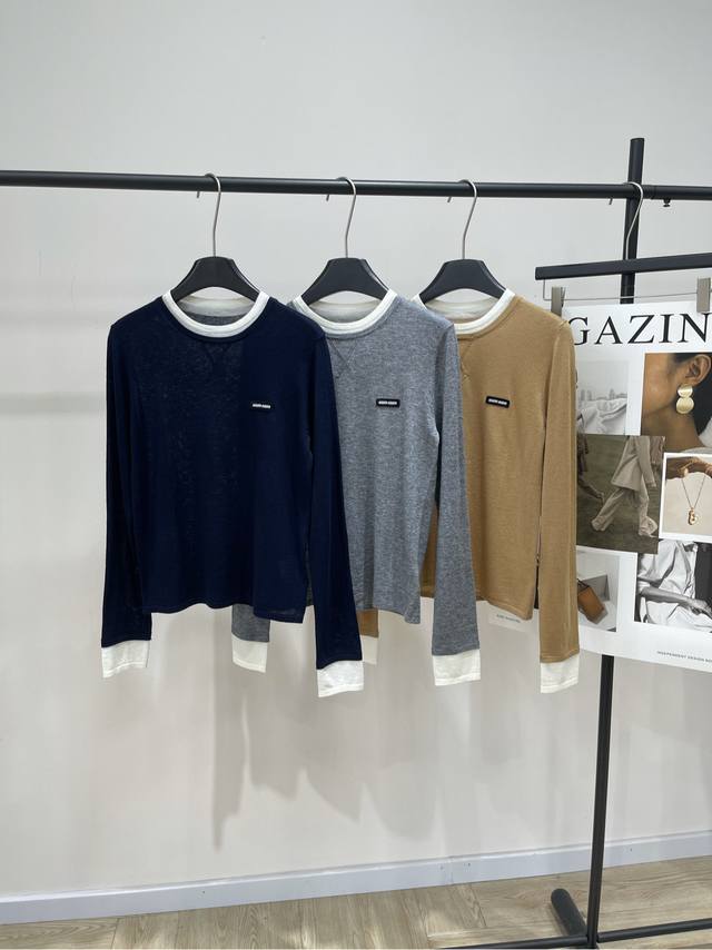 Letter Micro-Logo Fake Two-Piece Wool Long-Sleeved Bottoming Shirt |