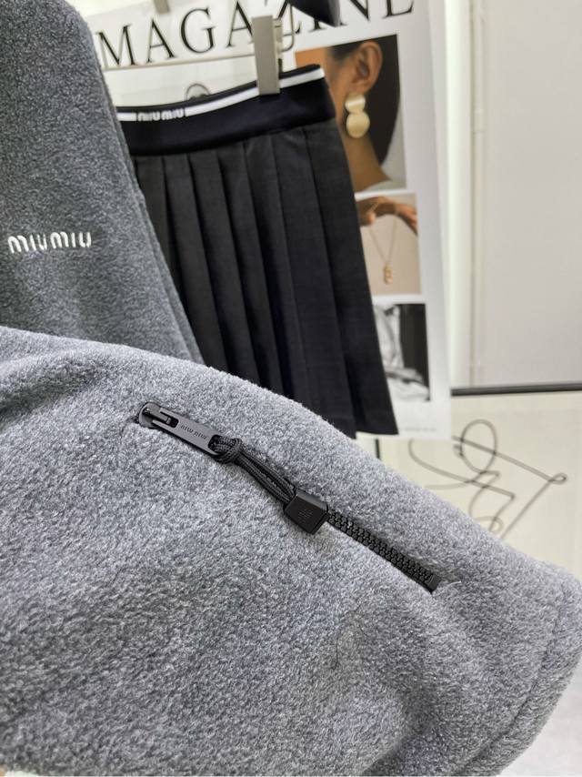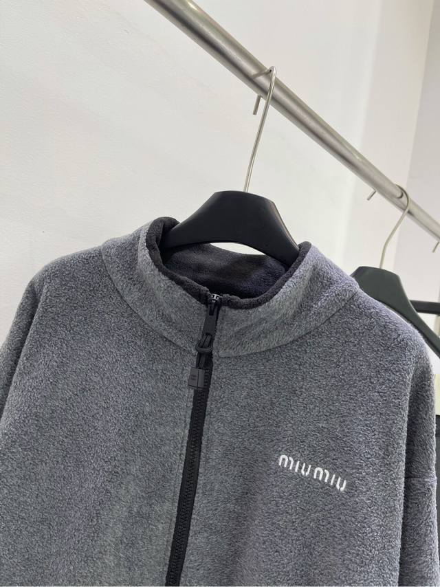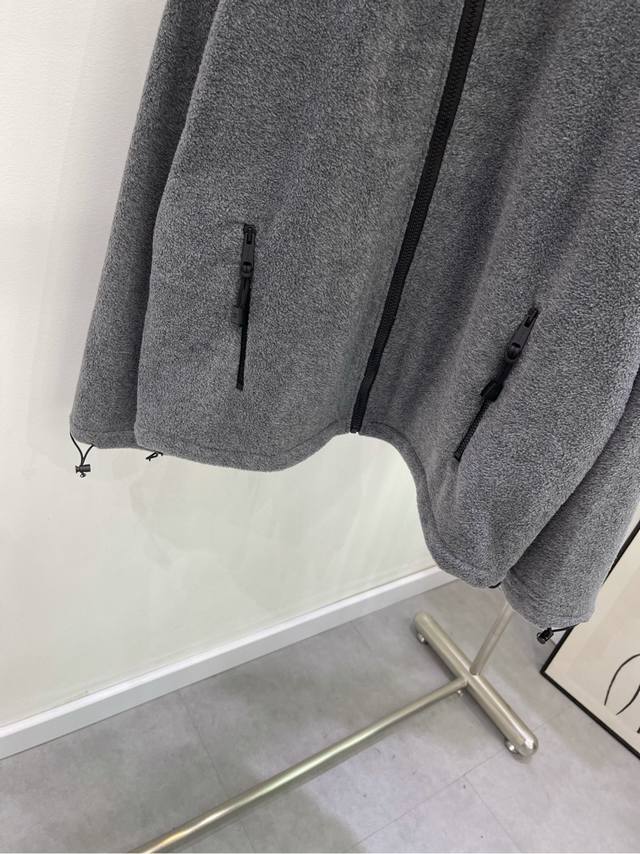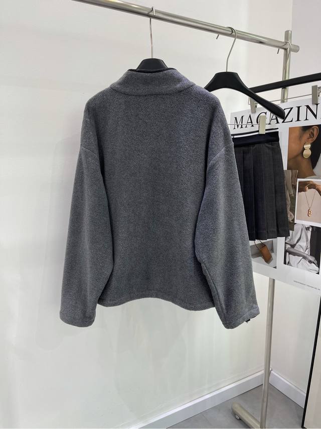 M Gray polar fleece stand-collar zipper jacket, Fabric: Polar Fleece, Color: Gray. Immersive Sharing! Unisex Mi*24Fw Early Fall New Style. Gray polar fleece stand-collar jacket with small logo embroidery. High-end version! Contrast brand logo embroidery on the chest. Dropped shoulders and a loose silhouette create a relaxed feel. Casual yet stylish, it's easy on all body types. It looks like a basic piece, but it's one you won't find in your wardrobe. The polar fleece fabric is incredibly comfortable. Highly wearable and incredibly high-quality.