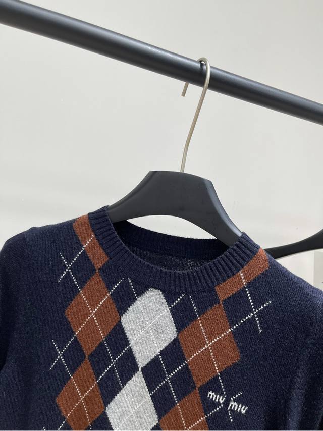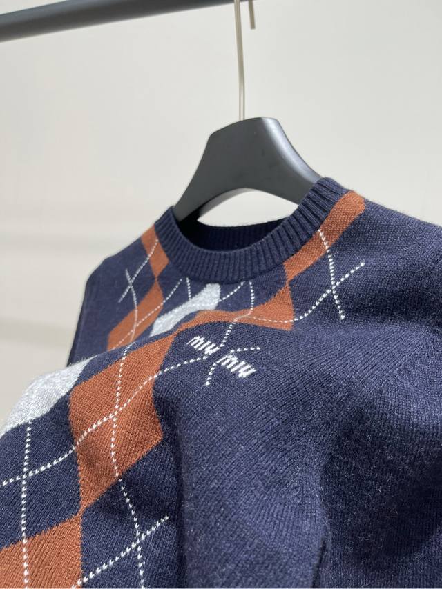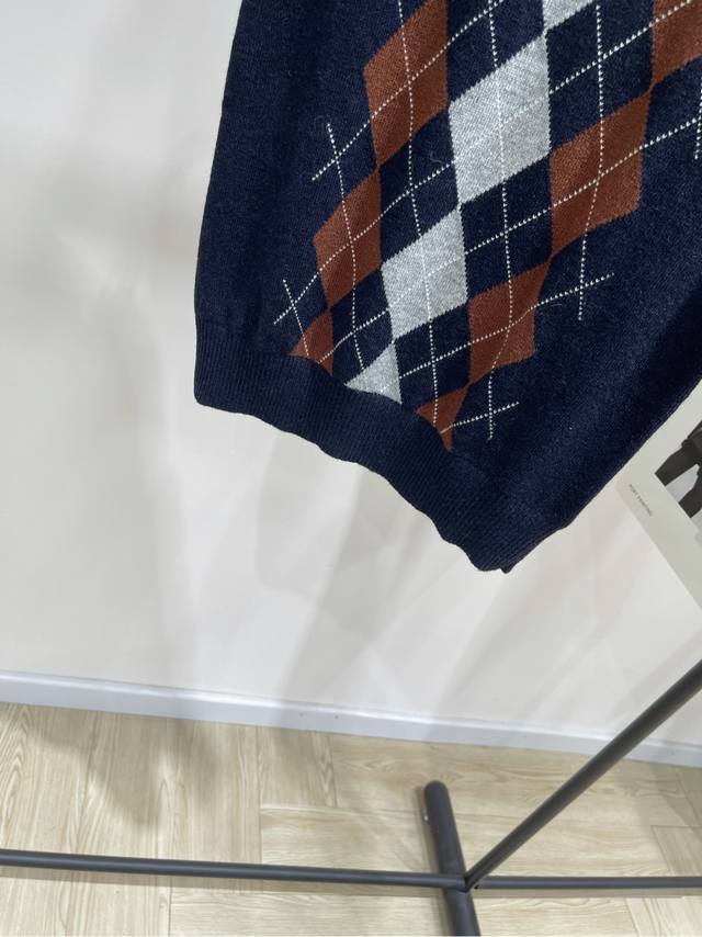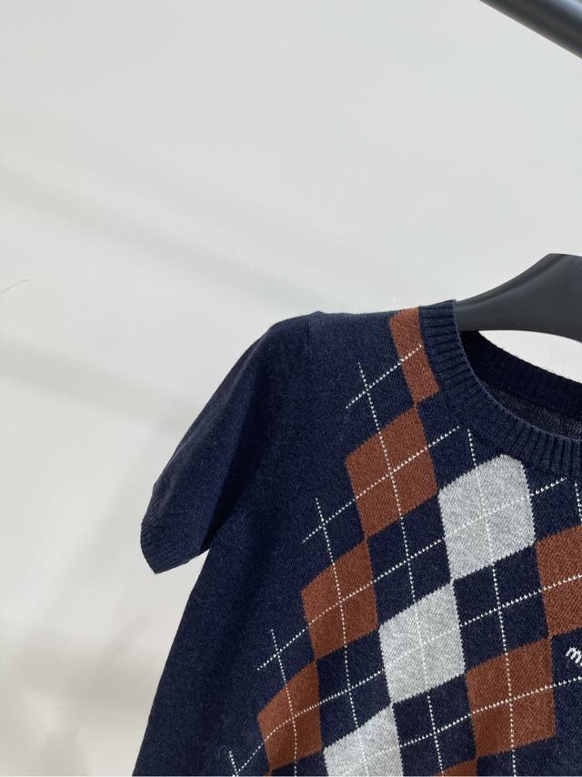 2025 autumn and winter new contrast color diamond cashmere knitted short sleeves