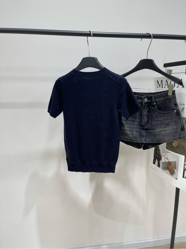 M navy blue diamond round neck knitted short sleeves