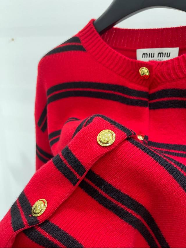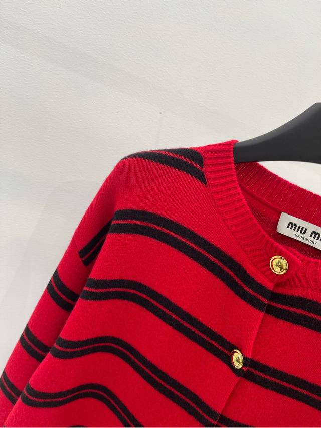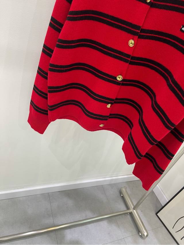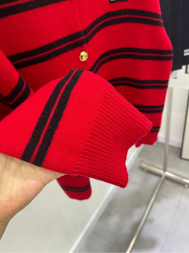 M Red and Black Wide Striped Gold Button Crew Neck Cardigan DDD ., Fabric: Wool Blend DDD Color: Red and Black Wide Stripes DDD 25Aw Autumn/Winter New Gold Button Color-Blocked Striped Knit Cardigan Outerwear DDD Simple and casual blended with a modern atmosphere DDD Reinterpreting basic styles with unique details DDD The fabric is crisp and delicate, with a comfortable lining DDD Exquisite double knitting process, presenting a voluminous textured effect DDD Red and black striped color-blocking DDD Embroidered logo patches add iconic elements DDD Adding a fashionable attitude, the loose cut with gold button closure DDD Creating a highly recognizable retro style! DDD Flat Size Chart: S: Shoulder width 51cm, Chest 106cm, Length 57cm, Sleeve length 55cm M: Shoulder width 52cm, Chest 110cm, Length 58cm, Sleeve length 56cm L: Shoulder width 53cm, Chest 114cm, Length 59cm, Sleeve length 57cm Manual measurements may have a 2-3cm error, which is within the normal range.
