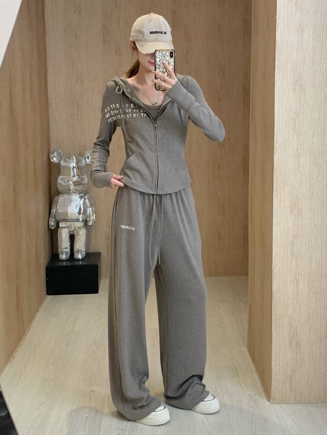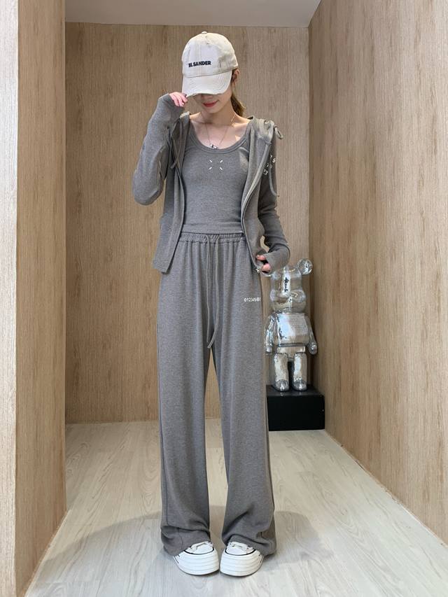 M*6 Fashion sports casual suit women's wide-leg pants lazy style high-end three-piece suit minimalist style French elegant lazy style