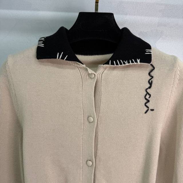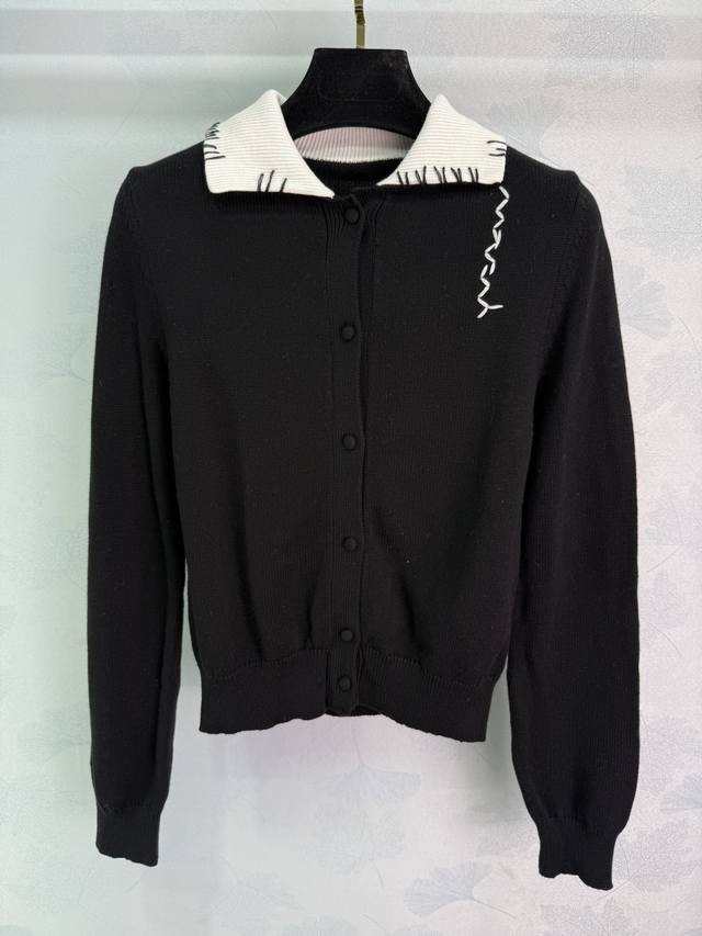 Ma*25 New Early Fall Black and White Lapel Knit Cardigan. Classic wavy lines ado