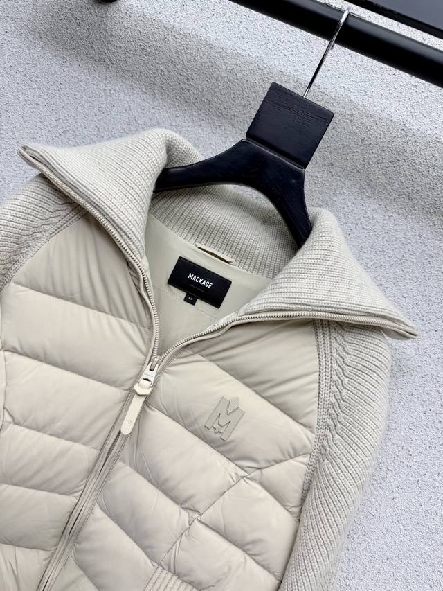 Mackag* Knitted wool and cashmere down jacket with excellent overall warmth. A casual and stylish classic down jacket with a perfect logo accent. High quality. Available in four colors: S, M, L, DDD.