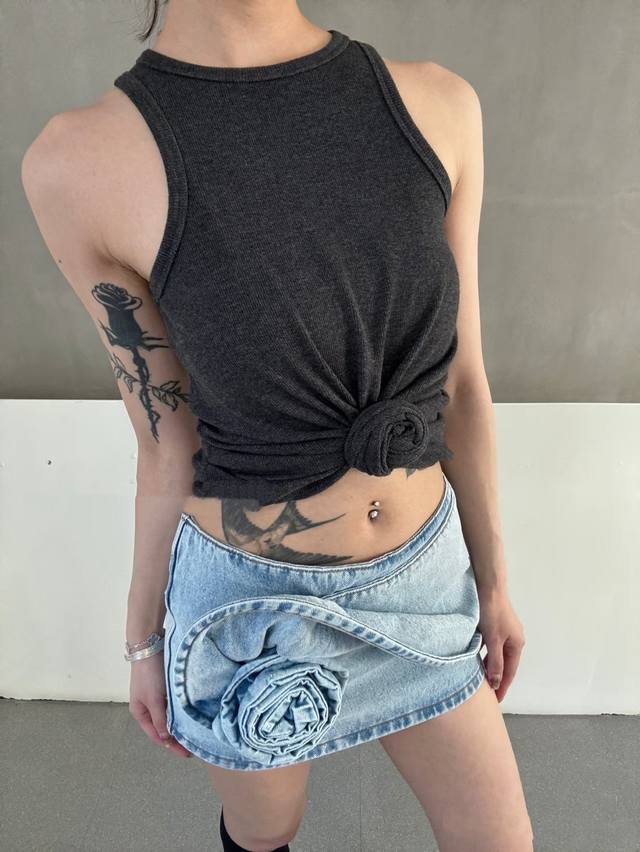 Magda knotted ribbed vest! Cotton, two colors, S, M, L,