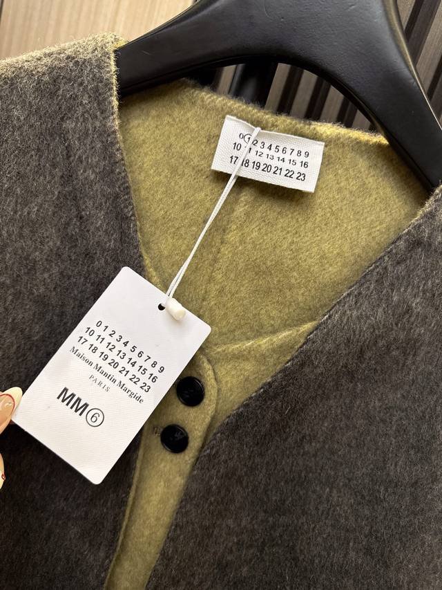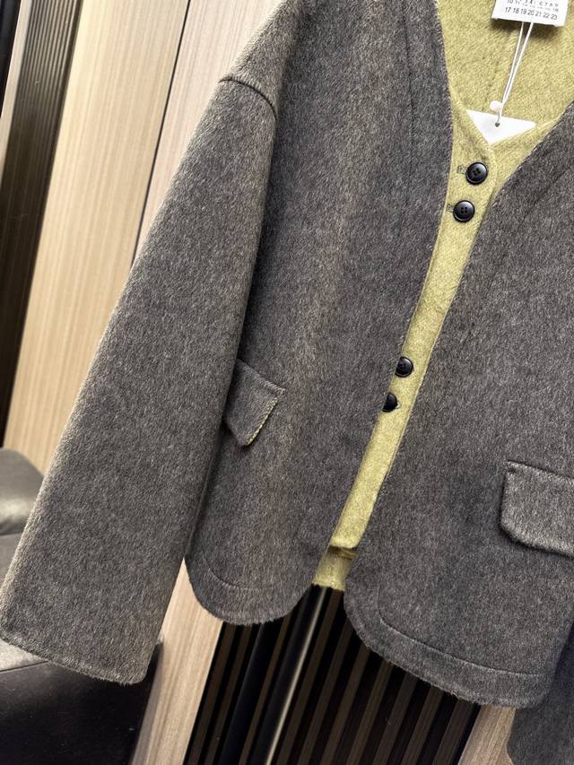 Magella 2025 Autumn/Winter New High-Quality Double-Sided Cashmere V-Neck Jacket, featuring a color-blocked, faux two-piece design for added depth. Made from select premium fabric, it's soft, skin-friendly, and warm. The simple yet stylish cut makes it suitable for various occasions