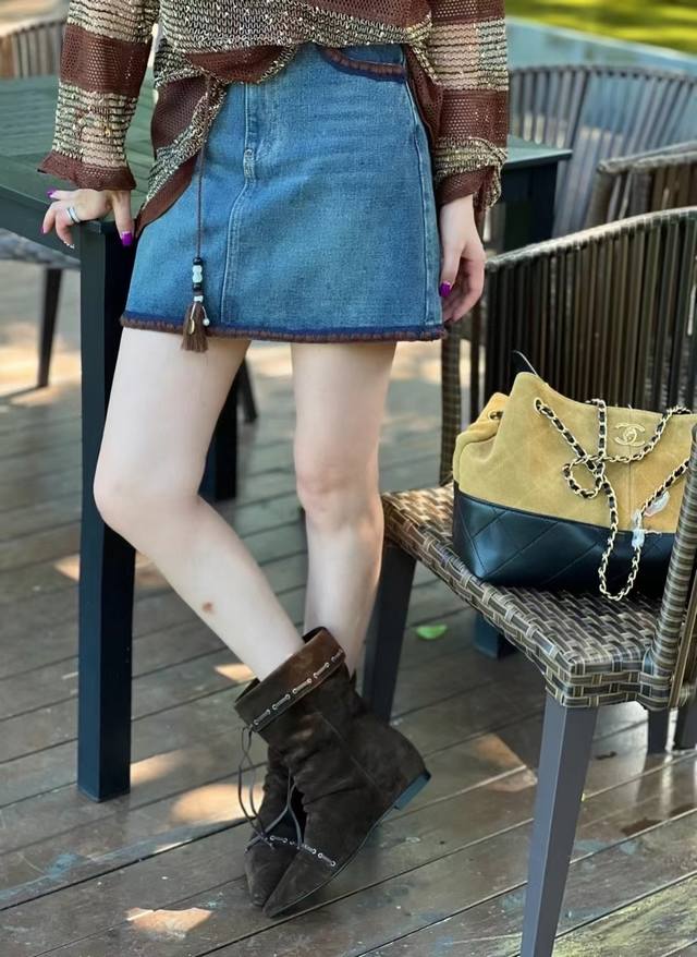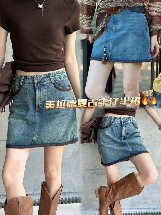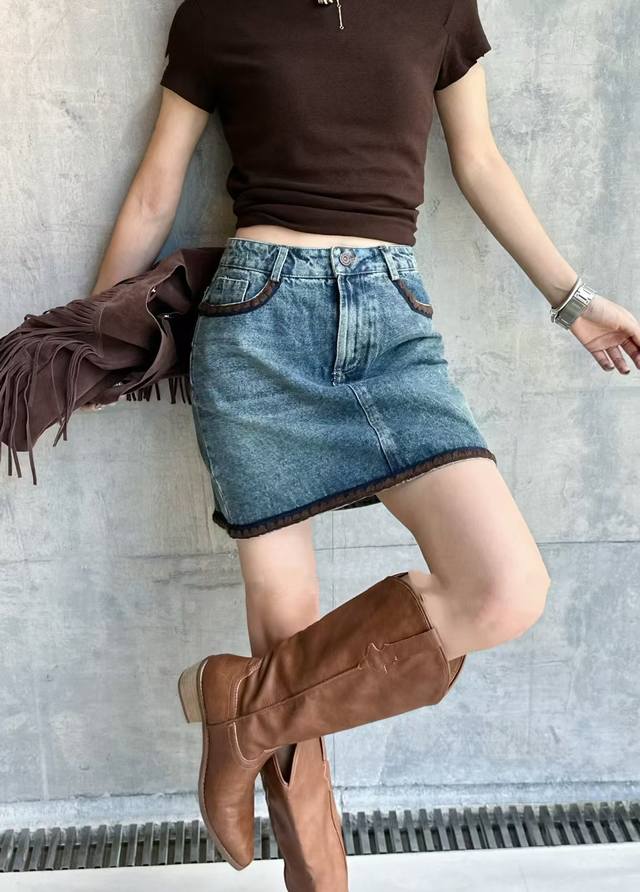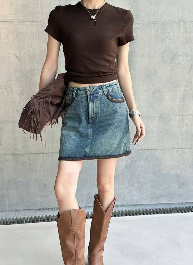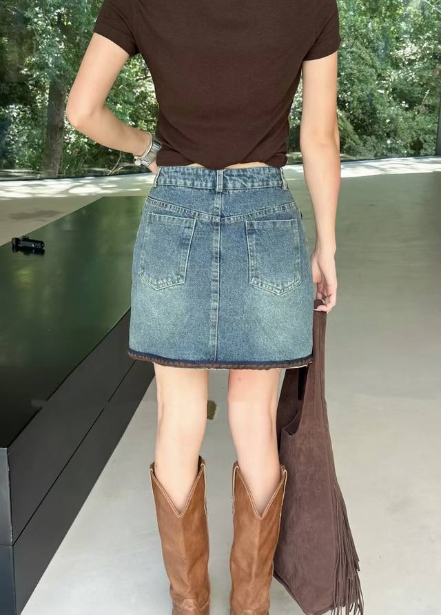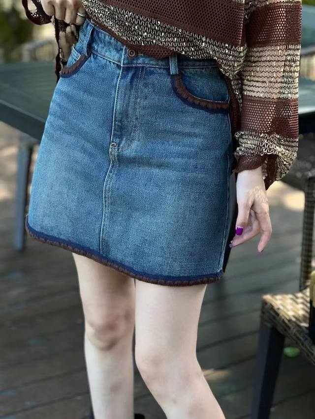 Maillard retro denim skirt embroidered raw edge design uninhibited high-end pocket contrast color super eye-catching high waist comfortable minimalist very long legs versatile and elegant Smlxl