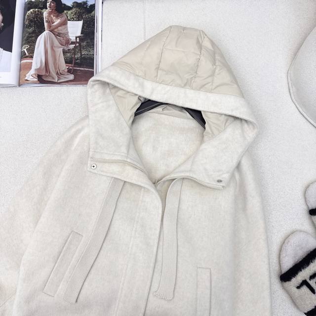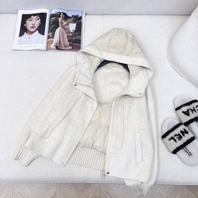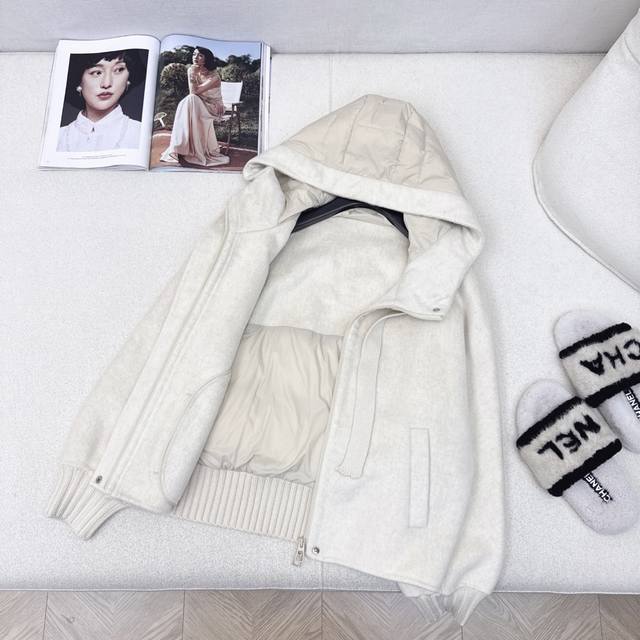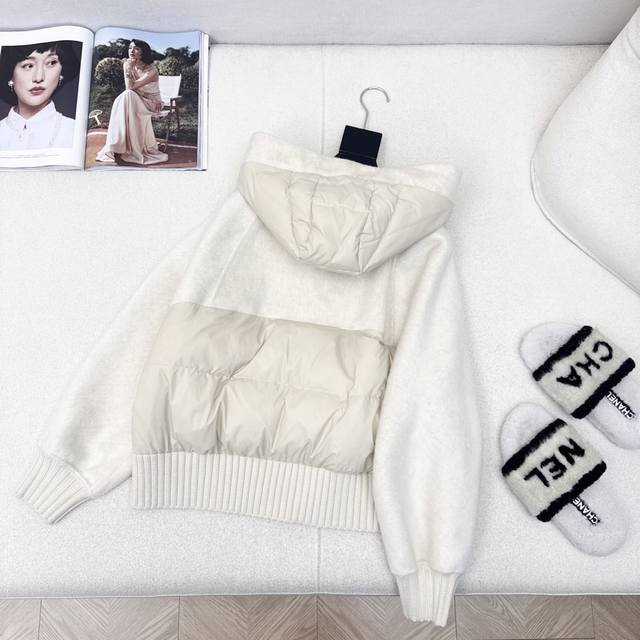 Max 25Ss latest autumn and winter patchwork cashmere hooded short down jacket. The wool patchwork design is amazing. Classic OSS tailoring with patchwork and machine-sewn stitching. Classic, stylish and handsome. National standard 90 velvet imported recycled nylon fabric with superb texture. Imported machine sewing. Recommended two colors. Size S: Drop shoulders, chest circumference 124cm, length 56cm. Manual measurement may vary.