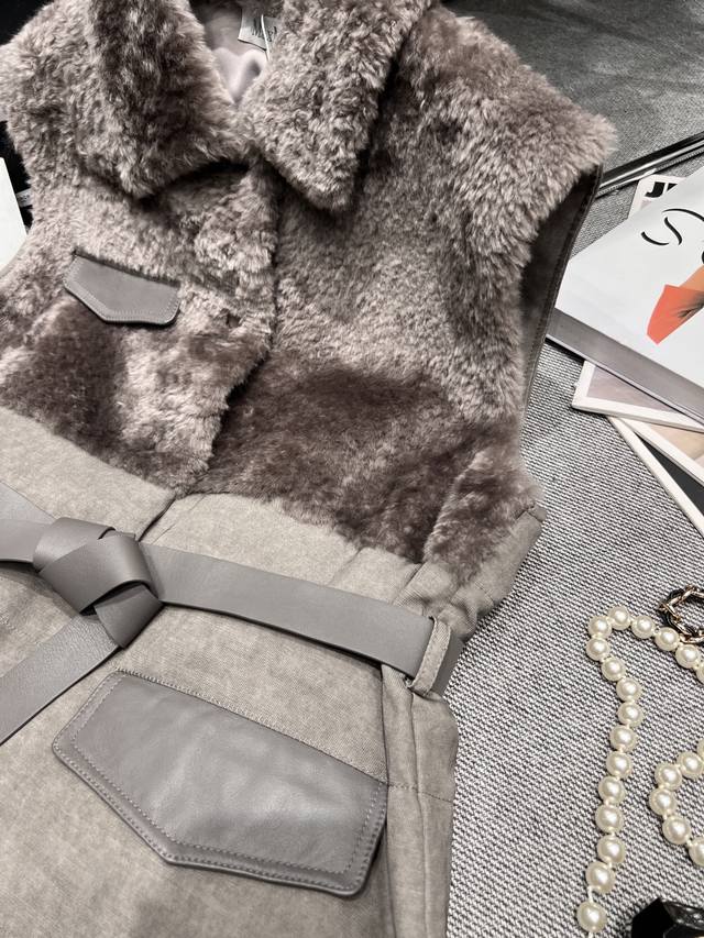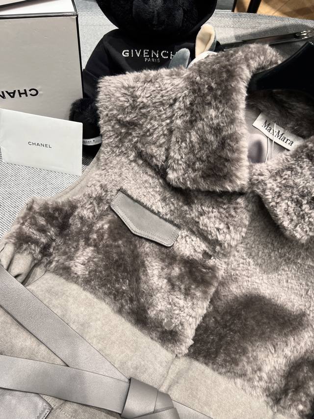 Maxmar* 2025 Autumn/Winter New Arrival: Shearling Down Jacket, made with imported Australian Molly wool, as soft as a cloud. Features a linen blend fabric, a matching belt, leather pocket details, and is filled with 90% white goose down. Sizes S-XL.
