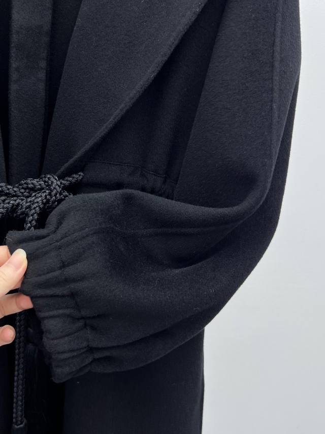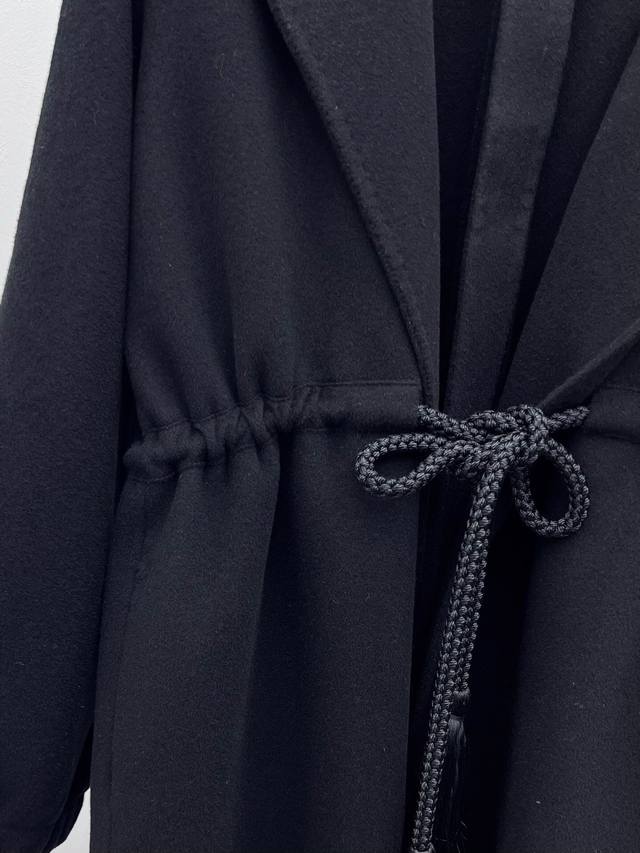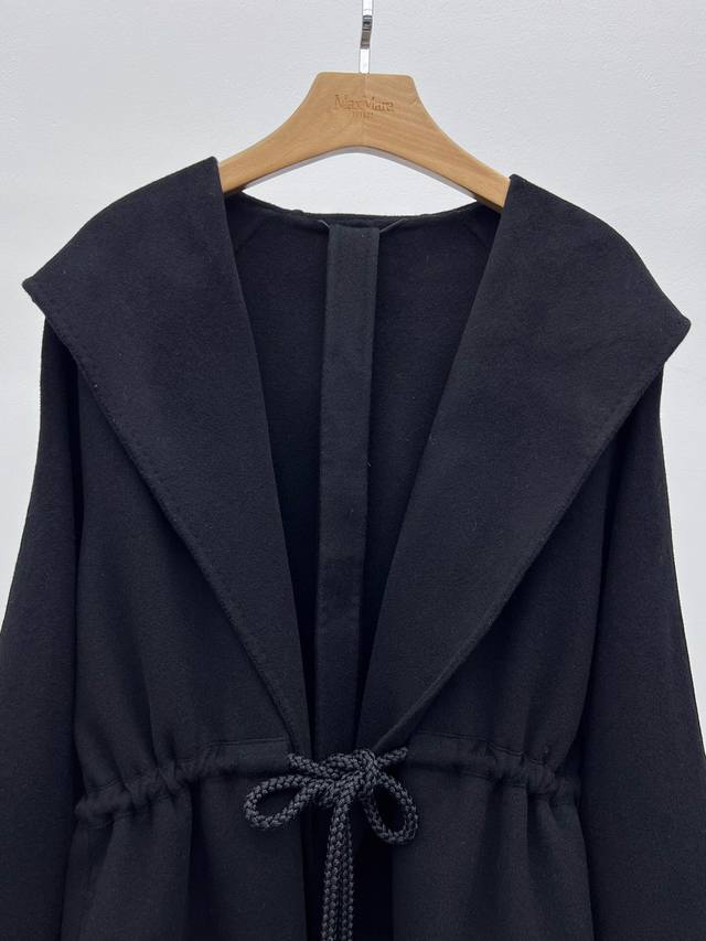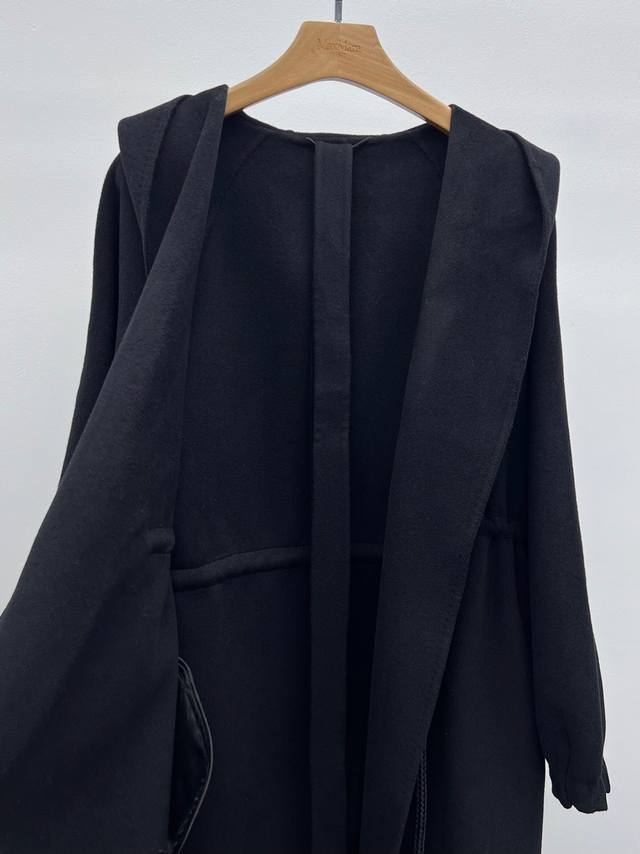 Maxmar* Camel Hair Hooded Coat DDD Made of 100% camel hair fabric DDD Robe-style silhouette with a large hood and shawl collar DDD Pleated elastic cuffs and side pocket details DDD Long tassel drawstring waist DDD Comes with a matching fabric belt for various styling DDD Sizes Dml