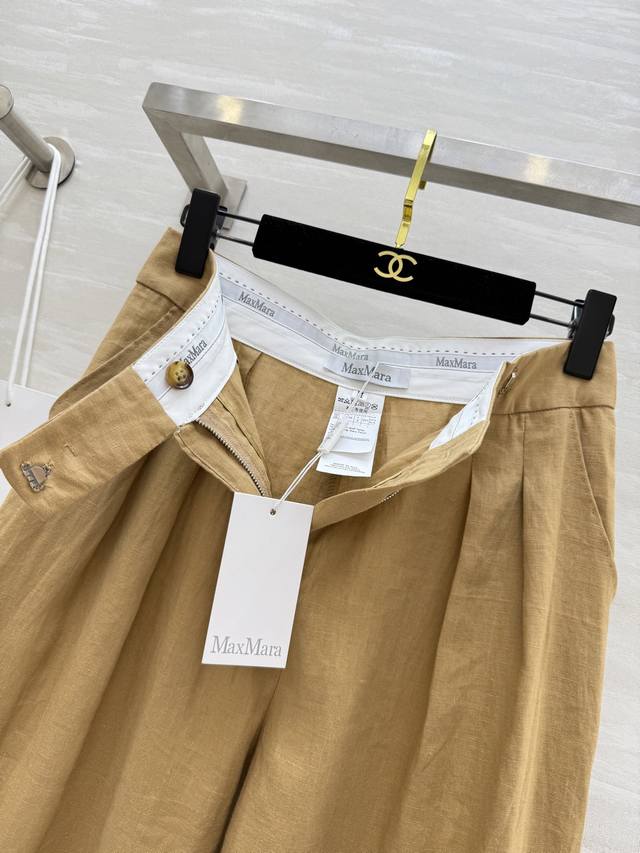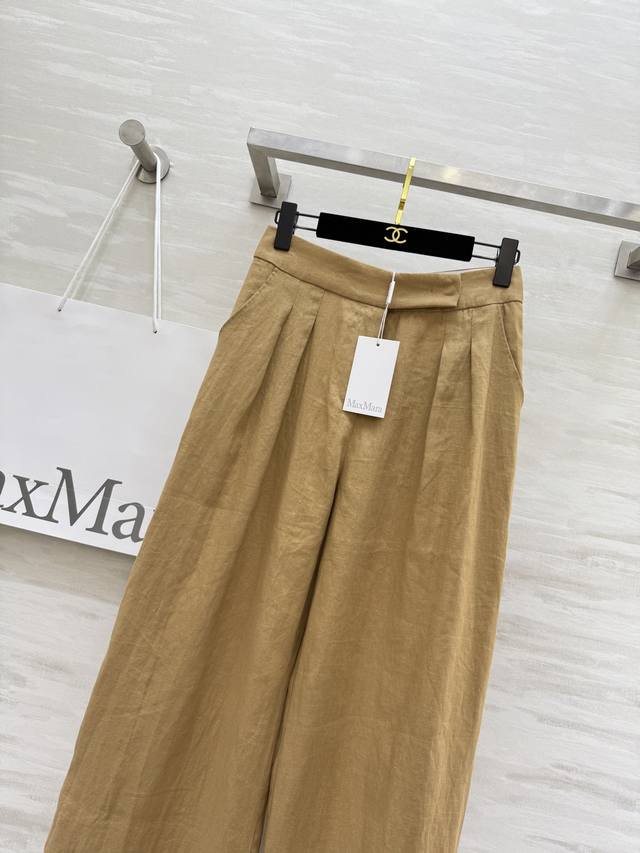 Maxmar2's new retro, old-money style linen high-waisted pleated trousers are a casual piece for daily commuting. Classic straight-leg wide-leg trousers are perfect for pear-shaped figures. Roll-on stitch details, jacquard inner waist patch details, low-key luxury, and high-end style. The upper body is super slim. Imported 100% linen fabric has a great texture. Easy to control for daily commuting, casually match with different styles, and high-quality customization. First release in stock. Size: SMLS Waist: 66, Hips: 100, Length: 104