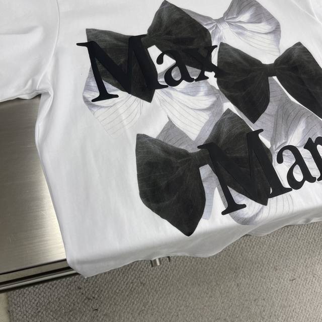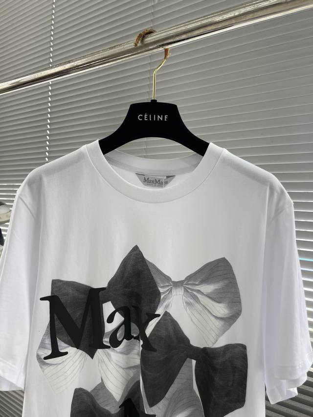 / Maxmara 25Ss new bow print round neck short sleeve regular T-shirt high version