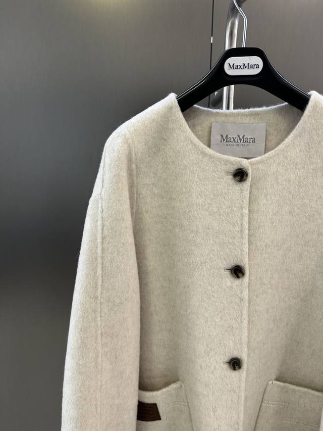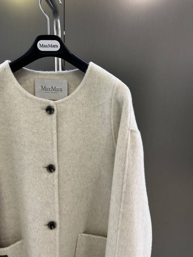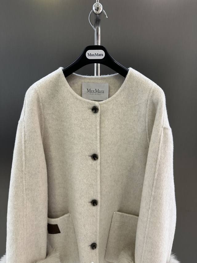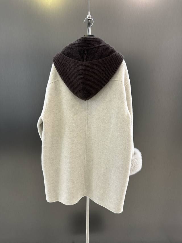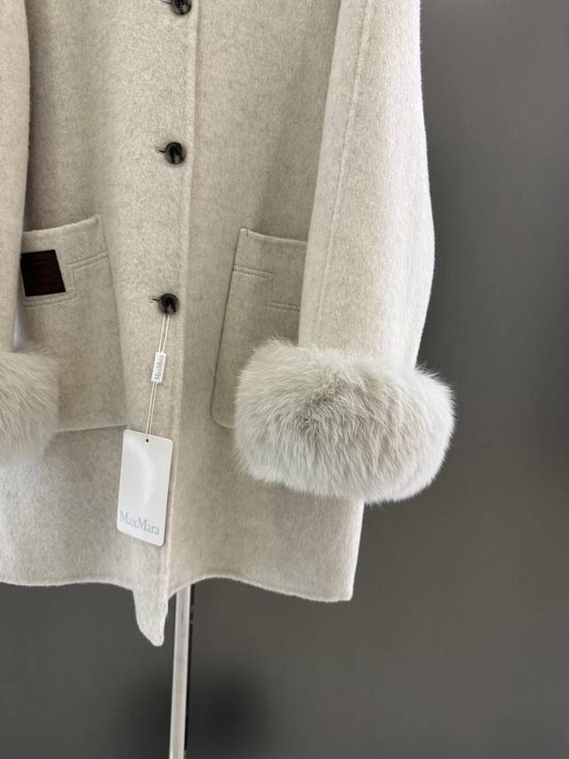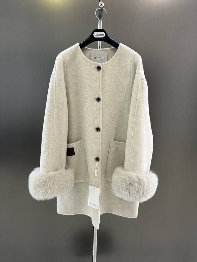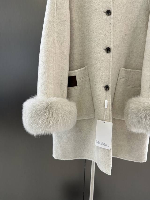 Maxmara Autumn/Winter New Wool Coat, Sheep Wool Blend with Imported White Fox Fur, Detachable Cuffs, Pairs with Knitted Scarf and Hat, Simple and Stylish, Size Sm Available Now. Length 85cm, Chest 116cm, Size S DDD