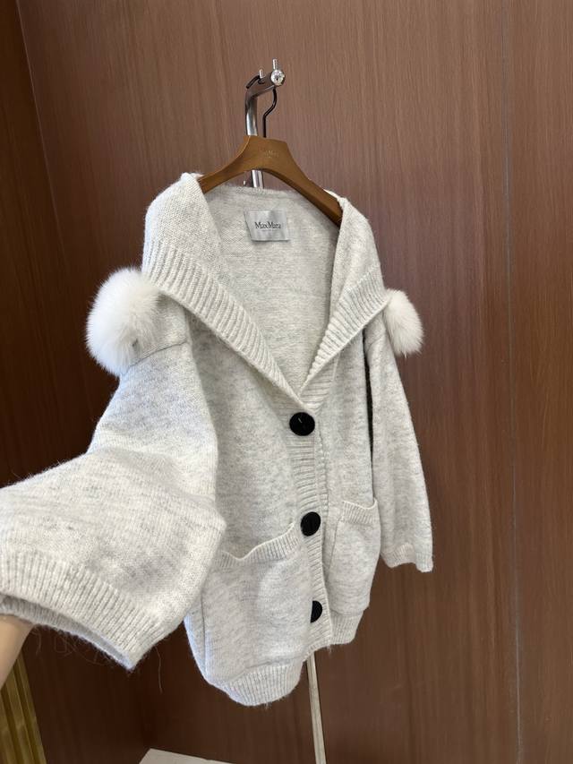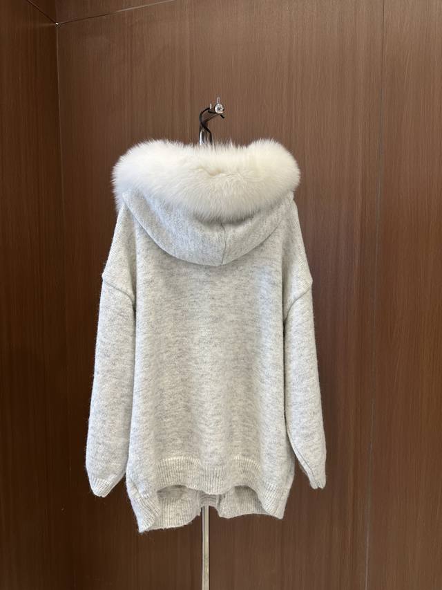 fox fur knitted cardigan with fur collar. Super soft color, super fairy, super gentle. In stock. Length 74cm, chest 134cm, one size