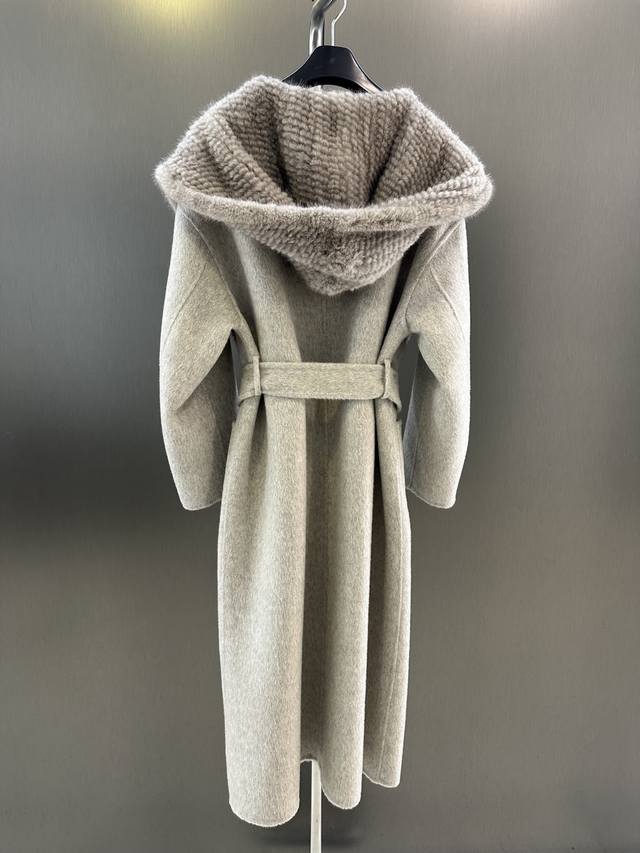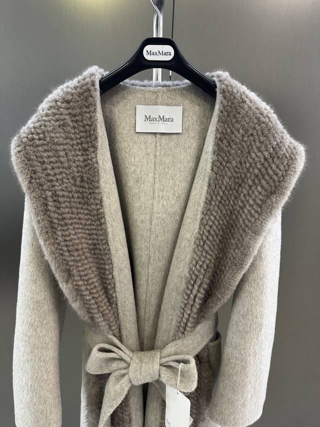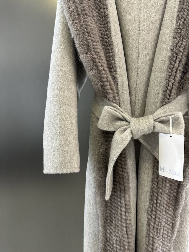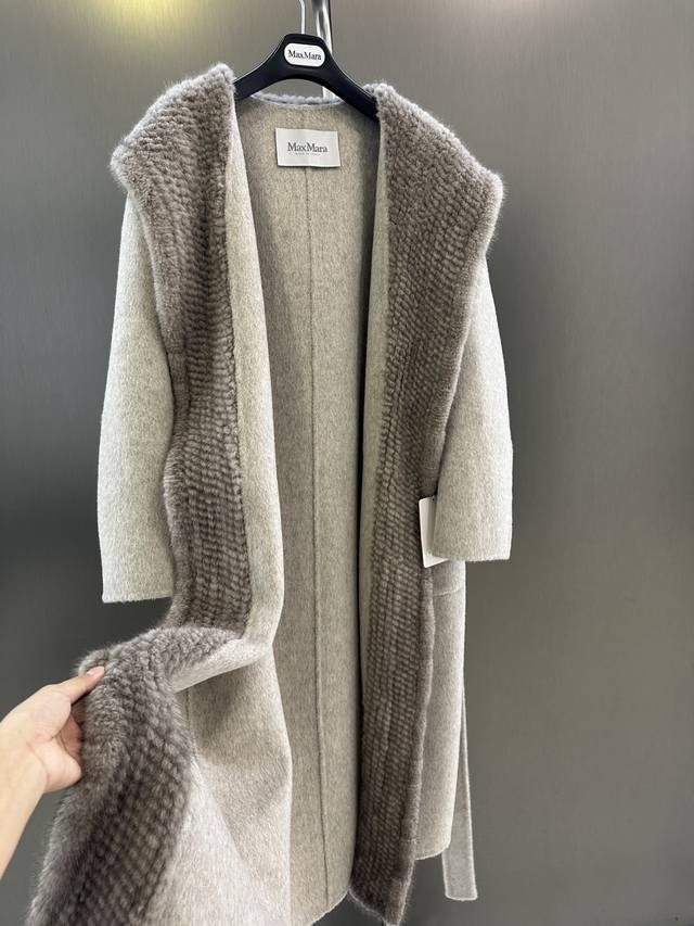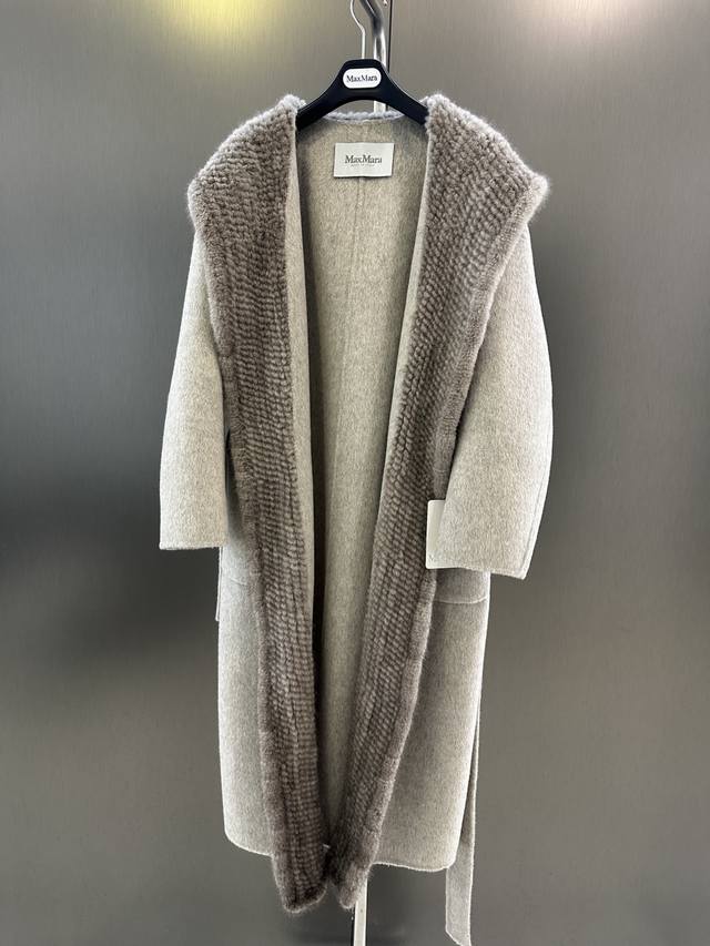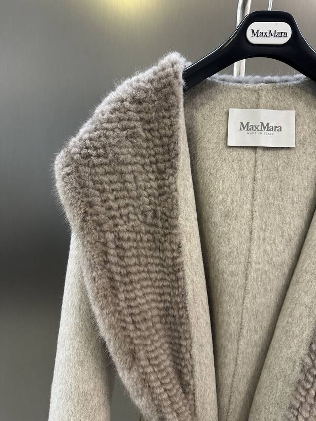 Maxmara *New Autumn/Winter High-Quality Fur Coat with Imported Velvet, Mink Knitted Collar, Cashmere and Wool Fabric, Soft and Comfortable. Size: M. Length: 116cm, Chest: 120cm.