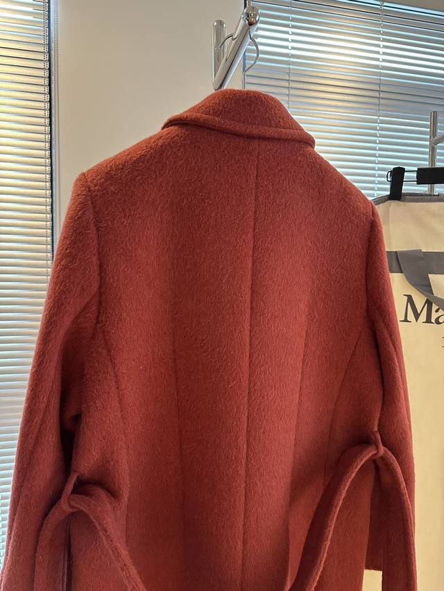M'ax's premium autumn/winter new Suri alpaca wool coat. Made from 65% Peruvian Suri alpaca wool. A surefire coat that looks great and stays warm. Exquisite hand-sewn hemming craftsmanship. Exquisite counter-matched style with custom M lining. High-end, unparalleled luxury. Available in two sizes (Sm). Chest 102cm, Length 112cm. Instant sale!